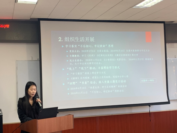本次述职评议考核会由比特28预测 13个党支部代表依次进行述职。各支部代表首先介绍了支部的基本情况和2019年开展“不忘初心、牢记使命”主题教育和落实年度党建重点任务的具体情况。随后,秉承着突出查找和解决问题的思路,各支部书记对目前支部存在的一些问题进行了总结,并提出了改进措施。最后,他们也对下一年的工作思路进行了介绍。比特28预测 党委委员对各支部代表的述职做了精彩的点评,希望各支部能够进一步把握支部特点、发挥组织作用,结合专业特色有效开展党建活动,并对提出的问题做到切实解决。