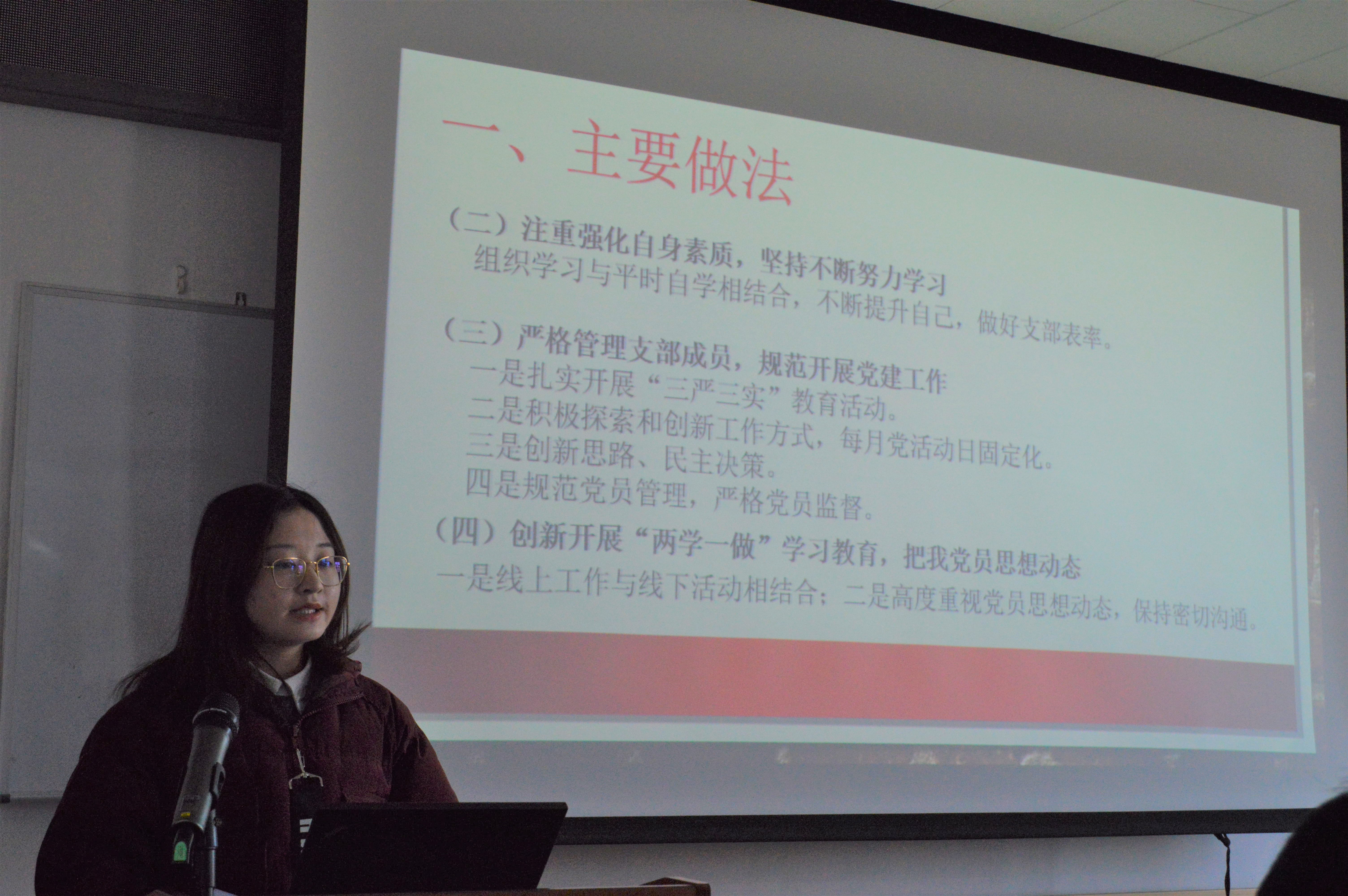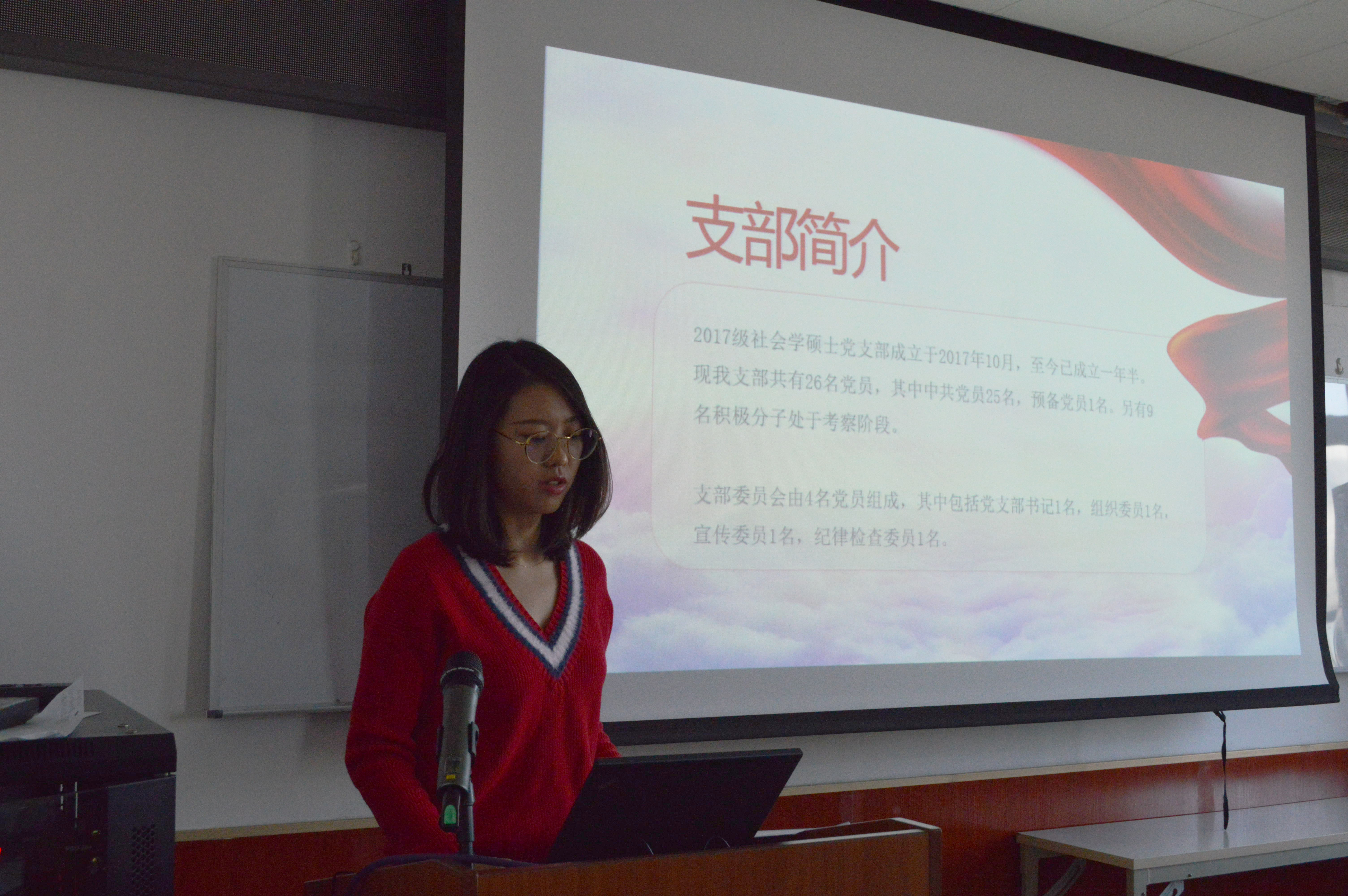 (2018级社会学硕士党支部周博雅进行述职)