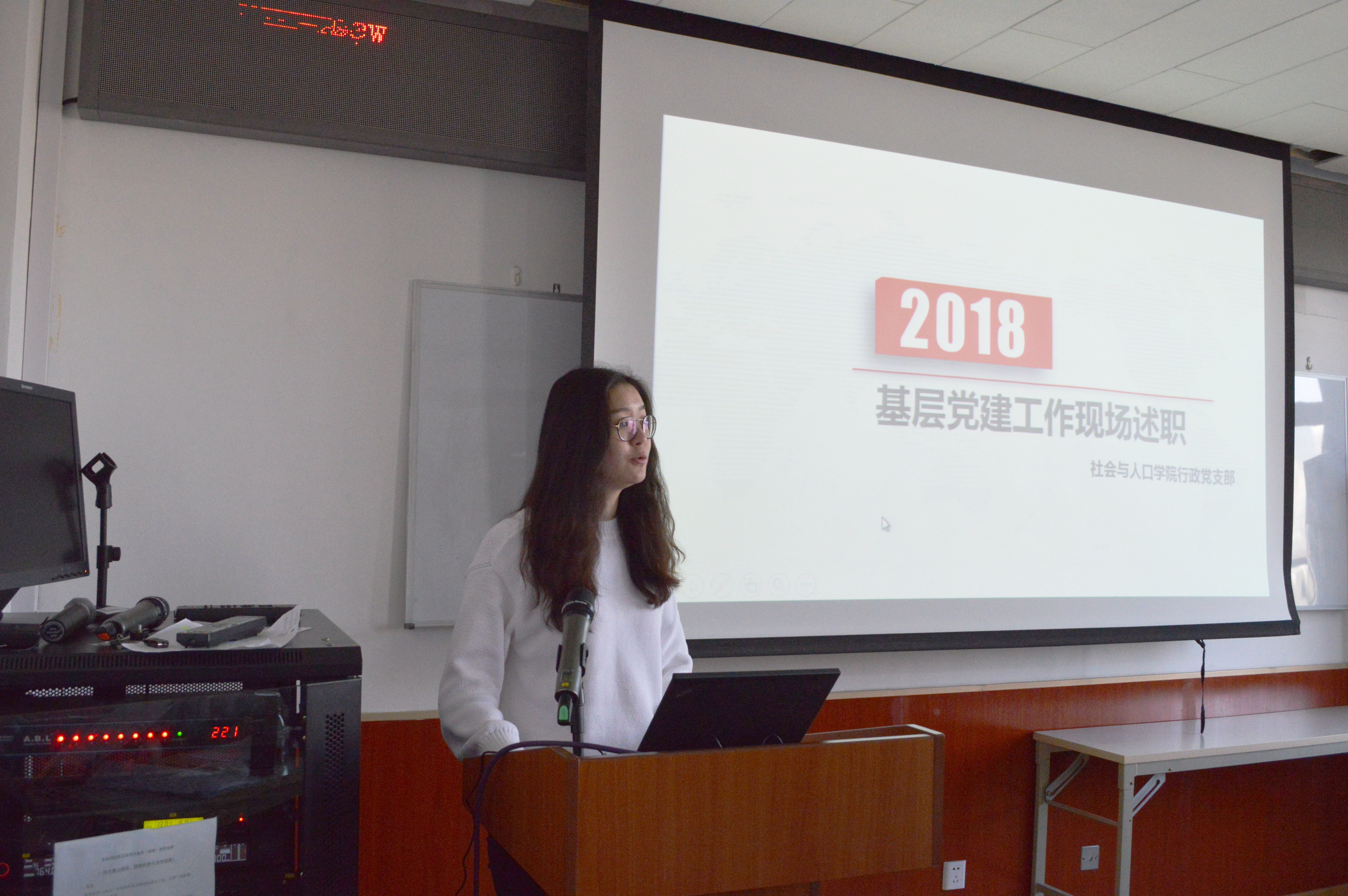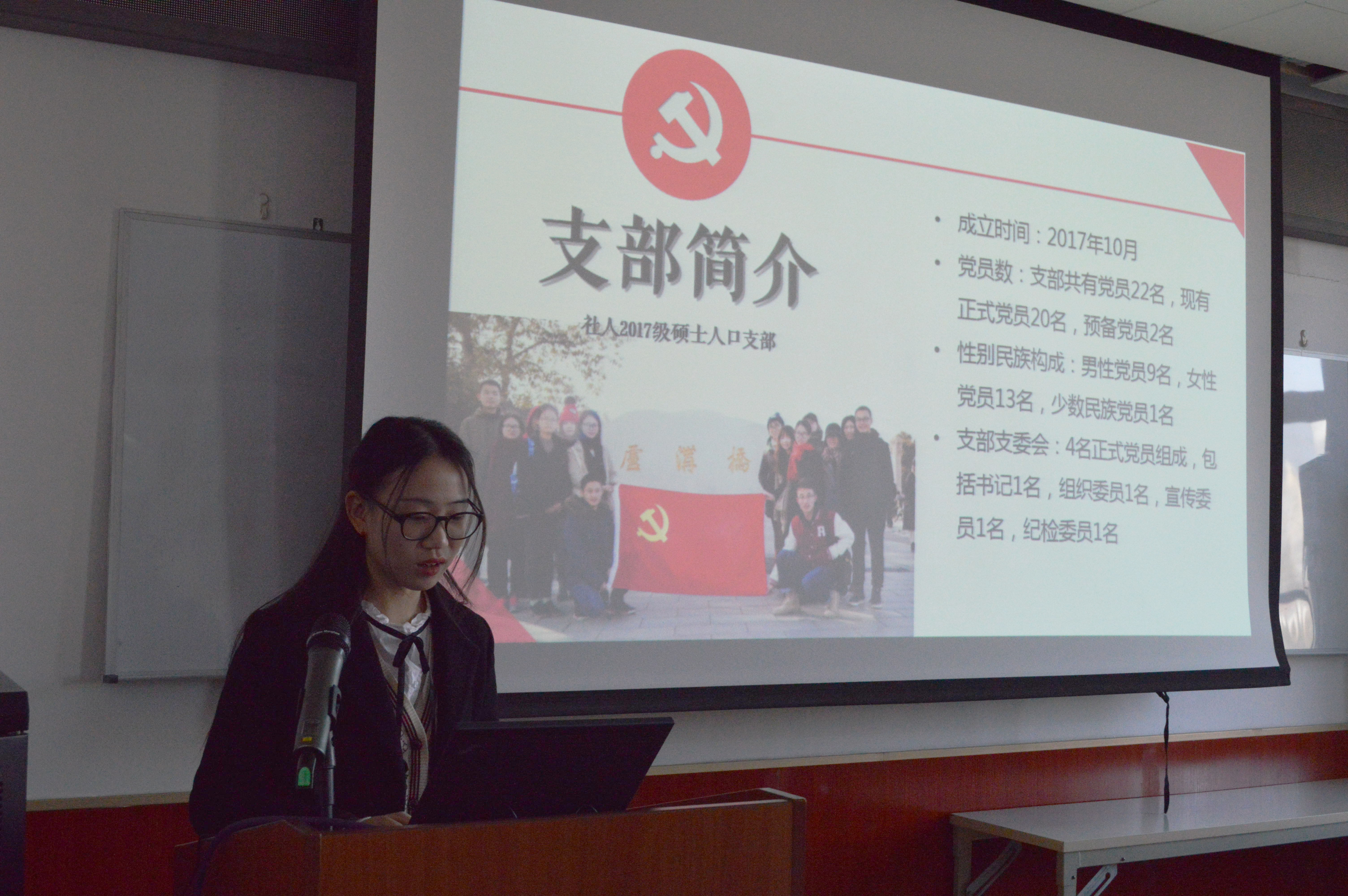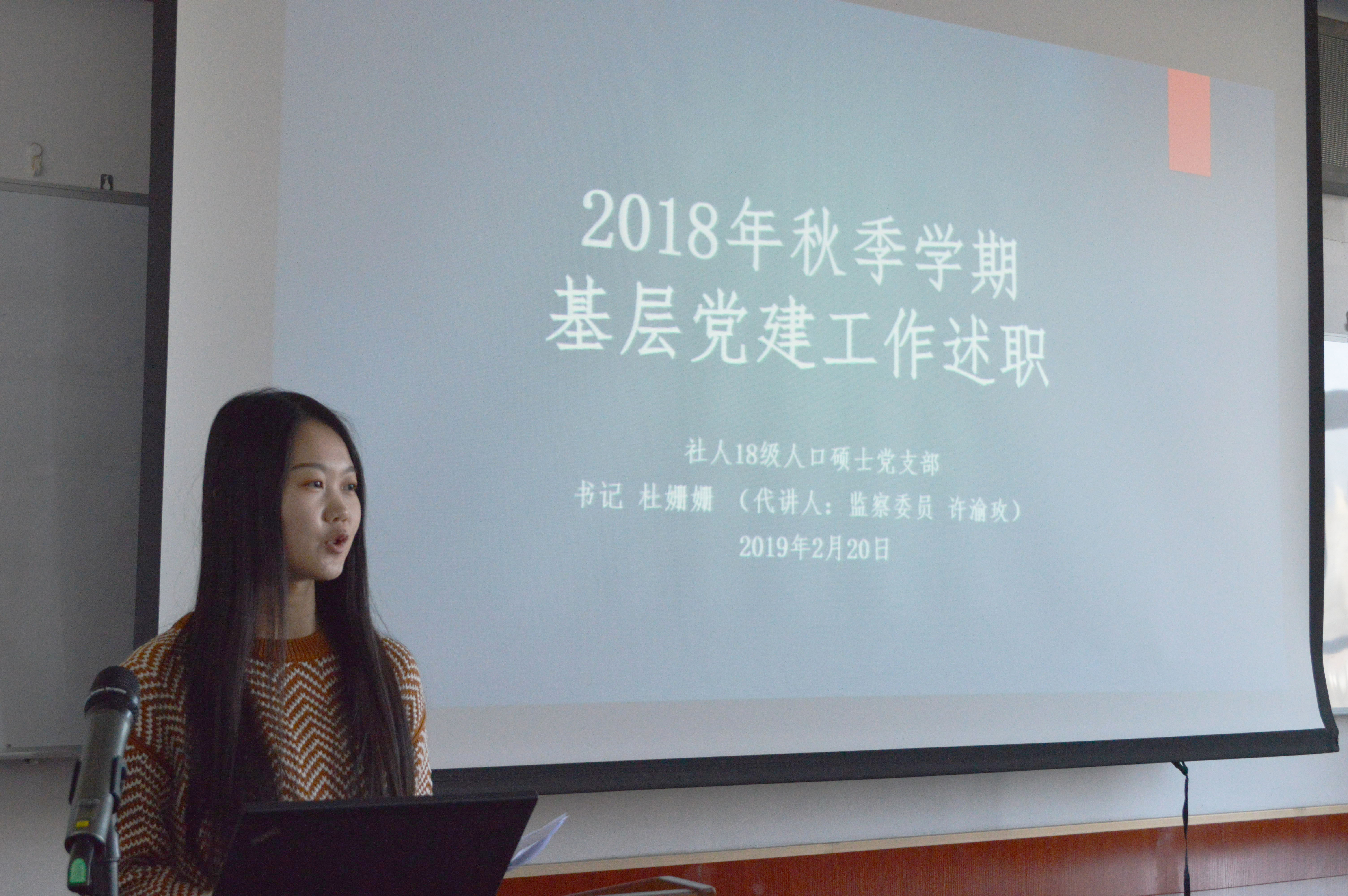 (2018级人口硕士党支部许渝玫进行述职)