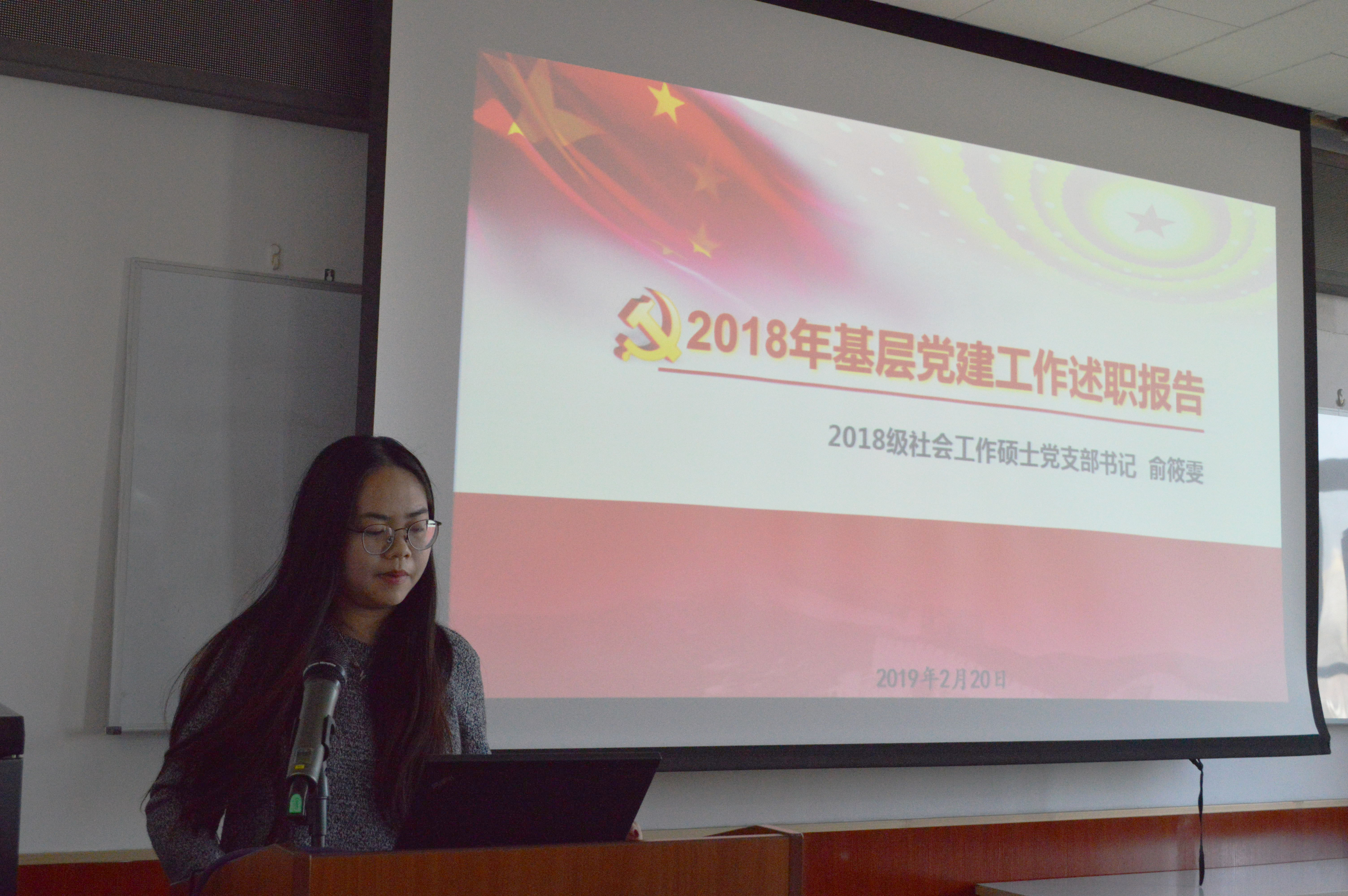 (2018级社会工作硕士党支部俞筱雯进行述职)