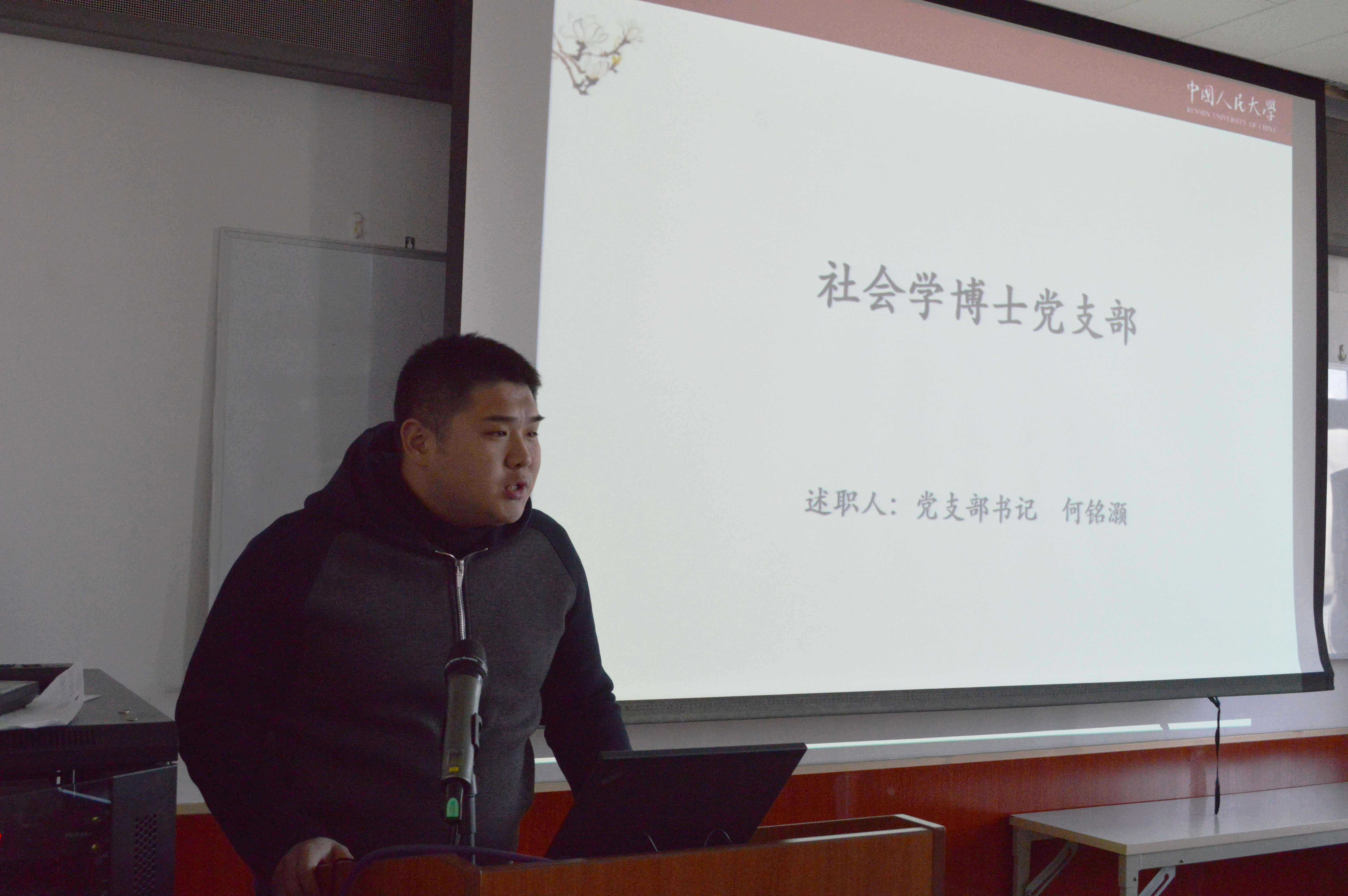 (社会学博士党支部何铭灏进行述职)