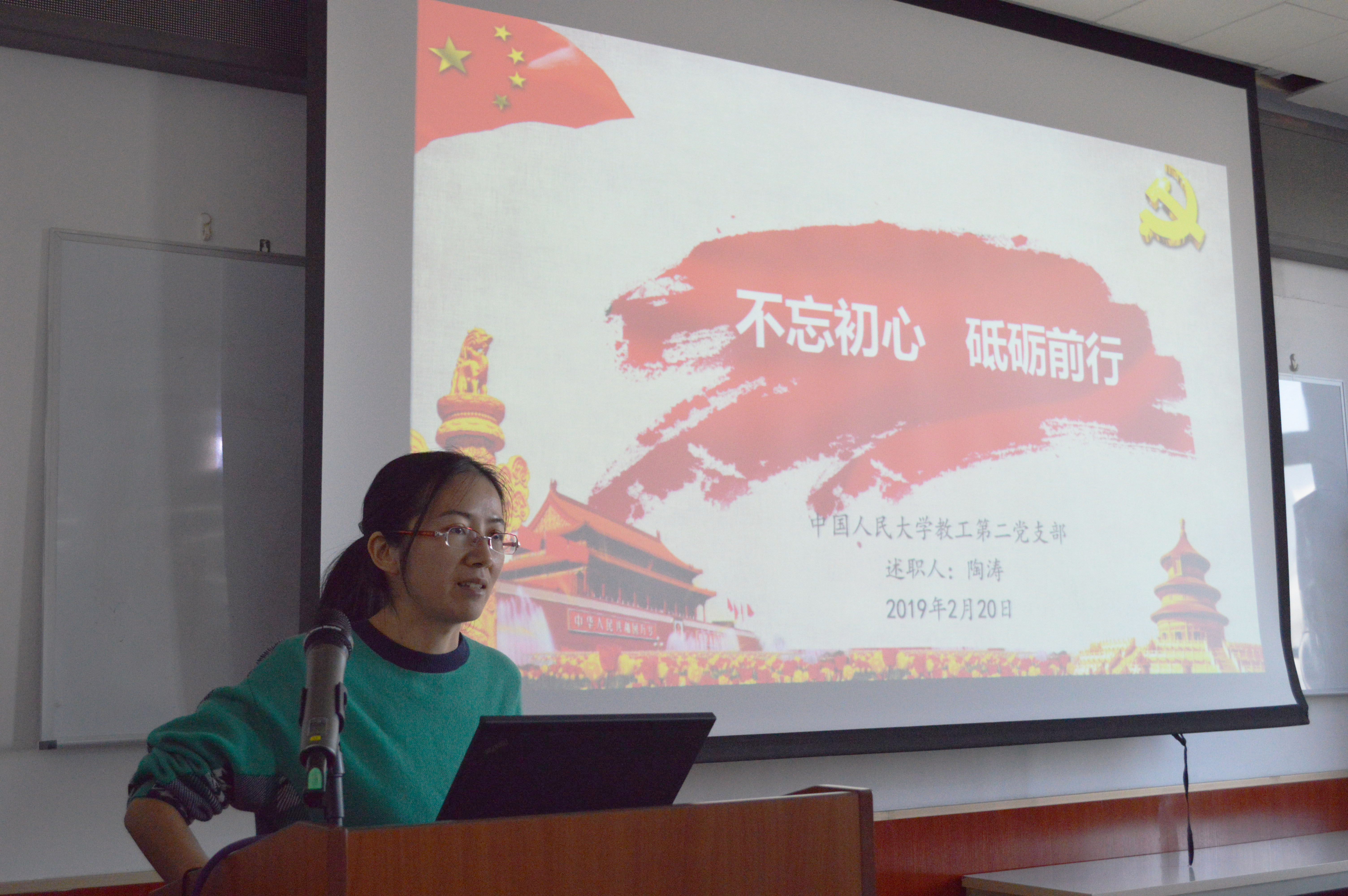 (教工二党支部陶涛进行述职)