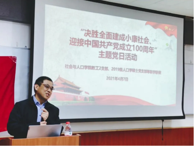 4月7日下午,社会与人口比特28预测 教工党2支部与2019级人口学硕士党支部于崇德西楼512联合开展了“决胜全面建成小康社会、迎接中国共产党成立100周年”党史学习教育主题党日活动,活动由教工党2支部书记陶涛同志主持。本次活动有幸邀请到中国人民大学国家发展与战略研究院首席研究员、老龄产业研究中心主任黄石松为大家带来关于“科学认识人口老龄化”的讲座,支部同志在聆听讲座后进行了踊跃的发言与讨论。