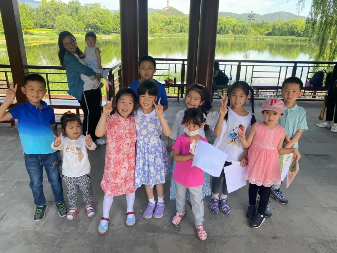 6月6日上午九时,教职工和小朋友们来到了本次活动的举办地——北坞公园,并在“北坞八景”中的“高湖塔影”集合。活动主持人首先对本次游园会的活动安排进行了介绍,在主持人的引导下,小朋友们进行了简短的自我介绍并互相认识,随后自由组队参加通关游戏。