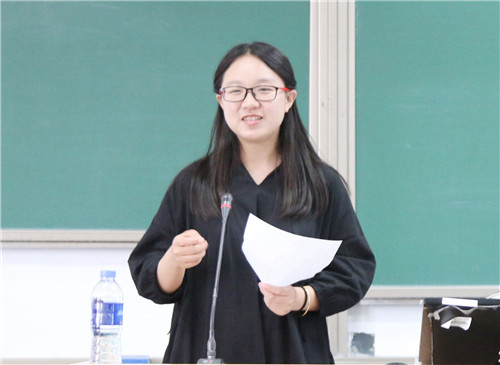 接着,第十五届团委副书记2015级本科生李桢进行工作总结。他回顾了过去的一年内分团委所开展的十九大报告理论学习、形势与政策知识竞赛等活动,并分享了关于学生工作的独特感悟,希望大家能够坚守岗位,坚持自己的职责,能够有所作为。