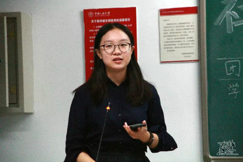 紧接着,学术实践部副部长2017级本科生黄子静简要介绍学术实践部的工作内容。她认为干事在学术实践部各种学术类和实践类工作中收获自己的乐趣和精彩。最后也欢迎学术实践部新鲜血液的加入。