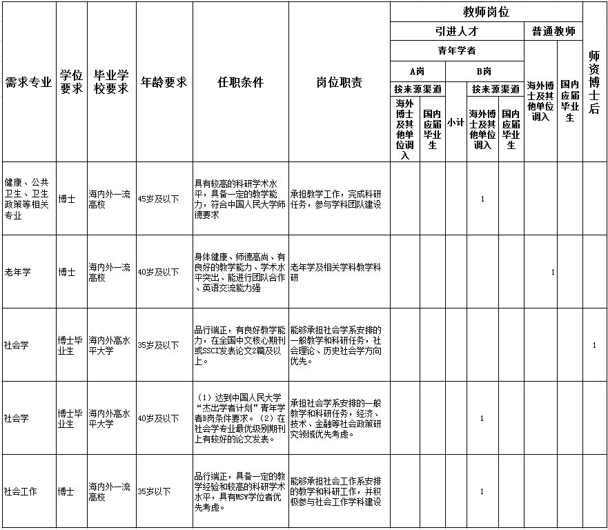 附件一:中国人民大学2018-2019学年教师岗位、师资博士后岗位招聘公告