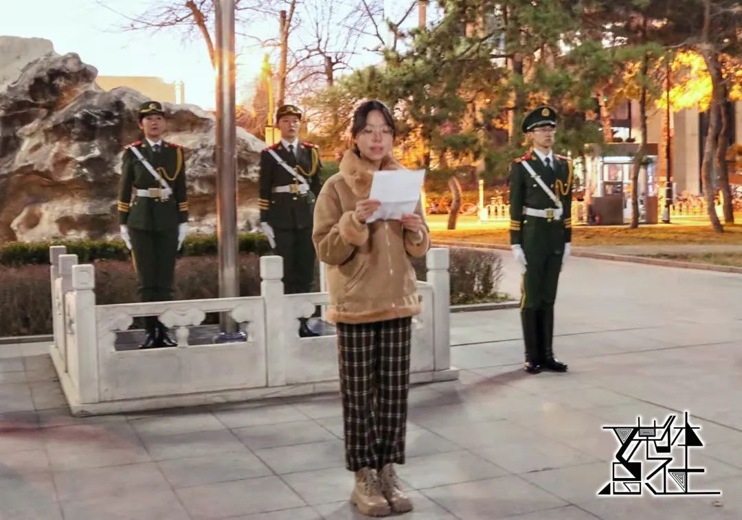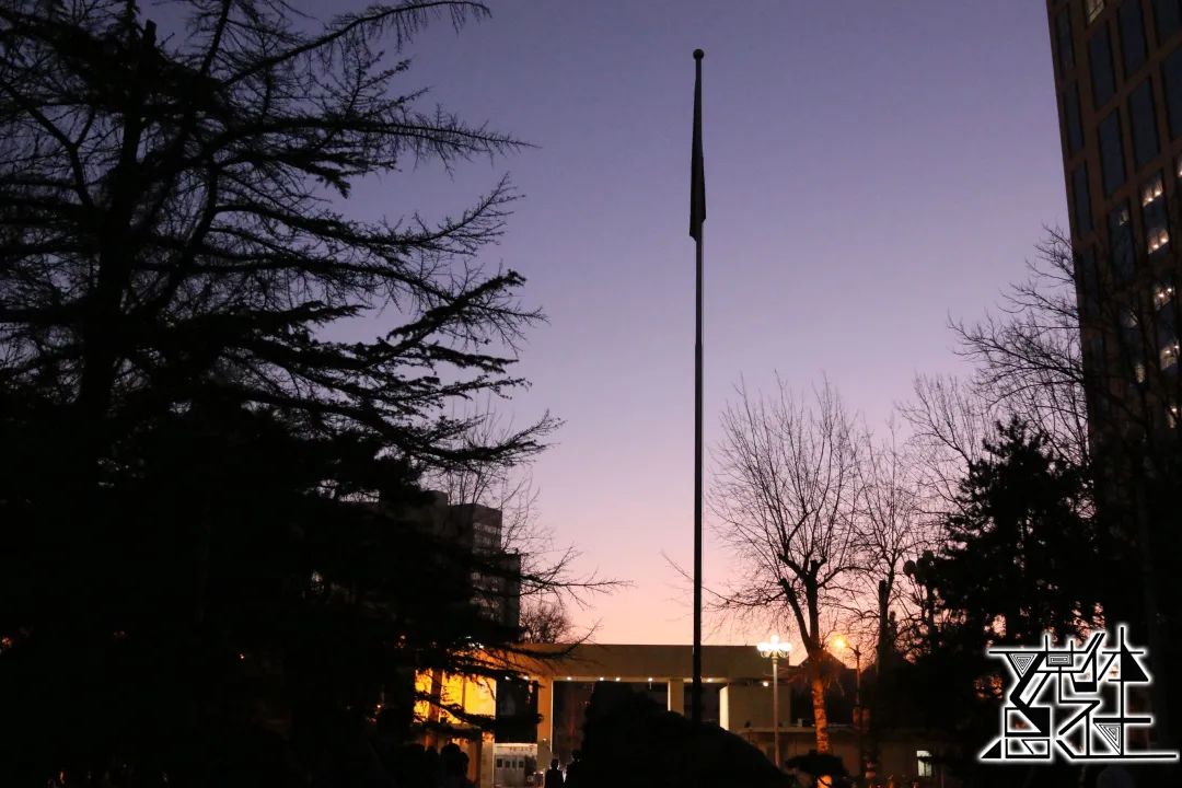 随后,升国旗、奏国歌,全体面向国旗行注目礼。中国人民大学国旗护卫队迈着整齐划一的步伐庄严地捧着国旗向我们走来。在全体同学的注目下,国旗缓缓升起。国歌的声音响彻校园,纵使冬天早晨寒风刺骨,同学们依旧感觉心中热血沸腾。