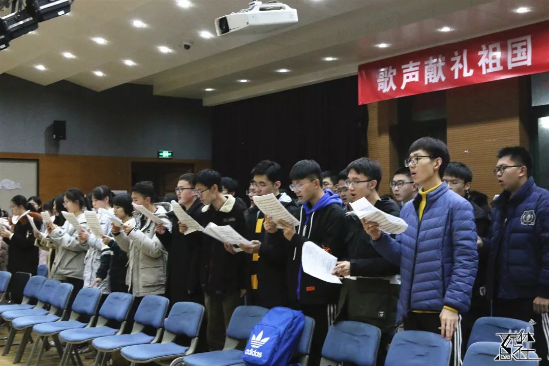 的准备曲目《红旗飘飘》。随着悠扬的歌声回荡在大厅之间,五星红旗飘舞的英姿仿佛浮现在每个人心尖。“红旗飘呀飘,腾空的志愿像白云越飞越高”,在深情激昂的旋律中,声浪仿佛碰到群山,群山发出回响;声浪仿佛越过江河,江河演出伴奏。几翻回荡往复,一直辐散到遥远的地方,为祖国骄傲的豪情无声地弥漫开来。一曲终了,歌声绕梁,老师和到场的学生代表们都纷纷表示赞许与欣赏。