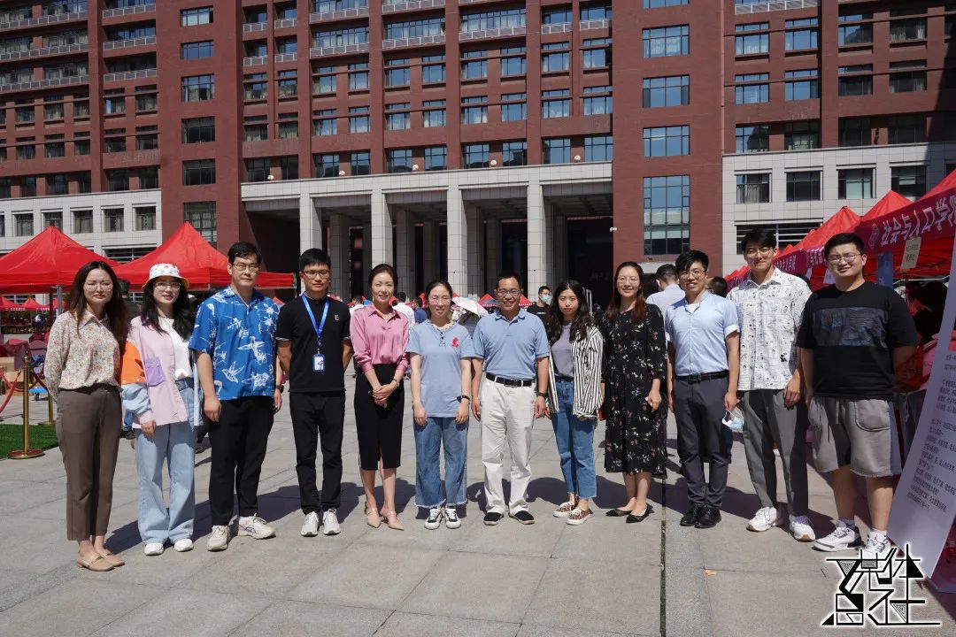领导、老师、新生以及现场的迎新工作人员亲切合影。
