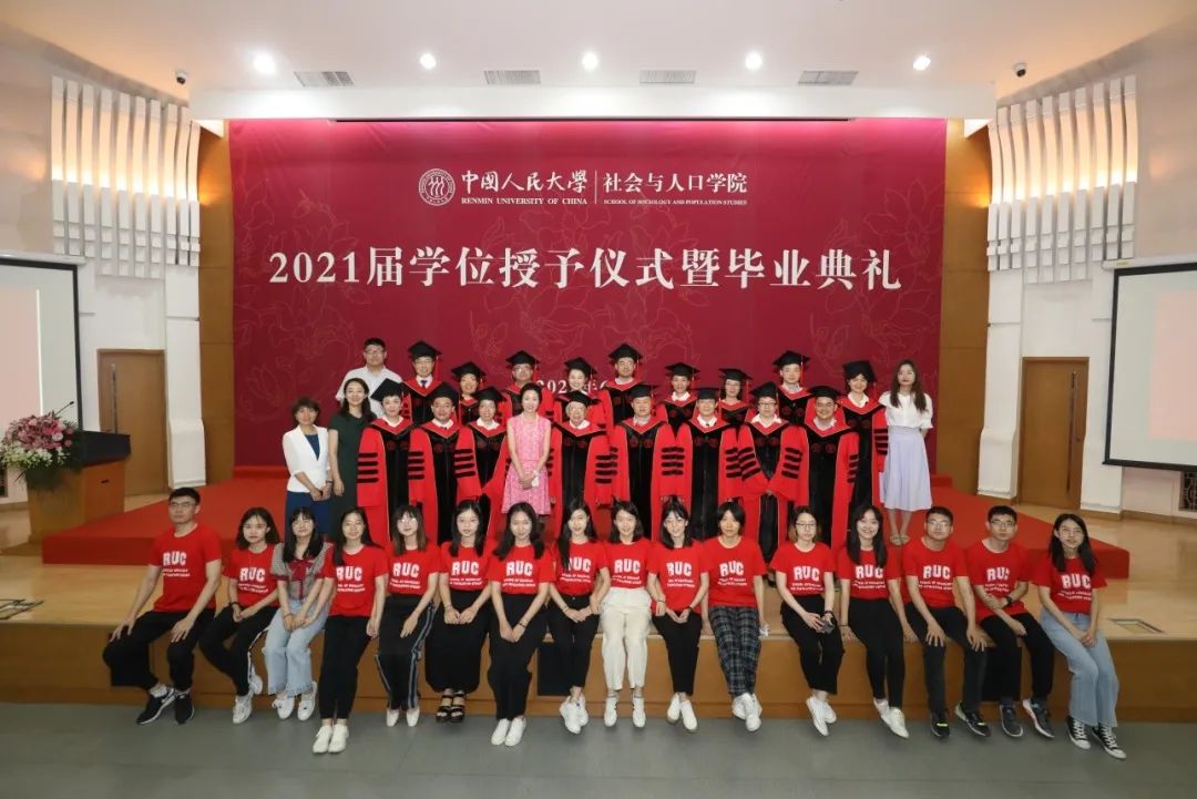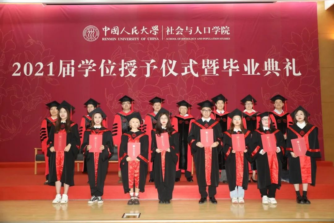党委书记高燕燕,党委副书记唐颖,副院长黄家亮、富晓星、宋月萍,导师代表李迎生、陆益龙、赵旭东、和红、王水雄、张会平,部分教职工,以及全体2021届毕业生,共同参与并见证了这一神圣而庄严的时刻。正在校外学习的冯仕政院长以视频方式与会并讲话。