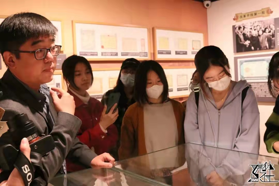 贾馆长带着同学们共同探秘了人大博物馆的两大常设展览。“北国春秋——北方文物展”展出了从长城以北地区发掘的历史文物。长城是古代中国农牧文明的分界线,它见证了北方游牧民族和汉族文明的交流与融合,也见证了多元一体的中国文化格局的形成过程。从红山彩陶到清朝服饰,一件件展品见证了从新时期时代到如今的中华文明的发展演变。在贾馆长妙趣横生的讲解之下,同学们感受到了古老文物的生动魅力,频频对展品啧啧称奇。