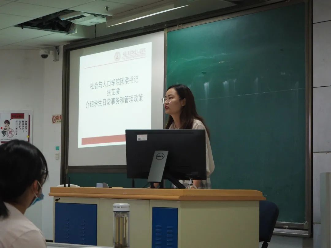 团委书记张芷凌对研究生学生日常事务和管理政策进行了介绍,从研究生学籍管理规定、学生证管理规定、奖助管理、宿舍督察等方面,对研究生手册进行了详细解读,并对教室借用、入党流程、学生就业等研究生管理和日常工作进行了讲解。