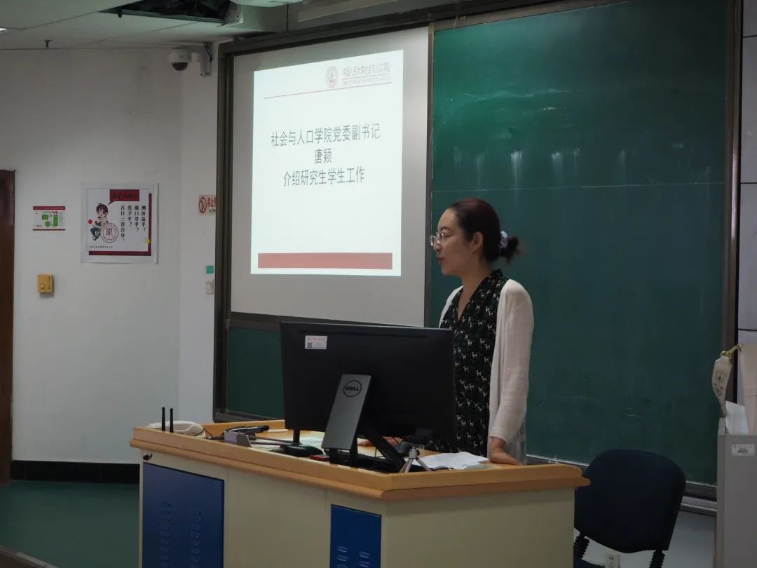 党委副书记唐颖首先对新同学的到来表示欢迎。随后,唐颖对研究生学生工作进行了介绍,她对研究生的校园生活适应、学业规划、职业规划等方面的内容进行了分享,并指导了研究生在面对问题时应该采取何种解决思路和求助方式。