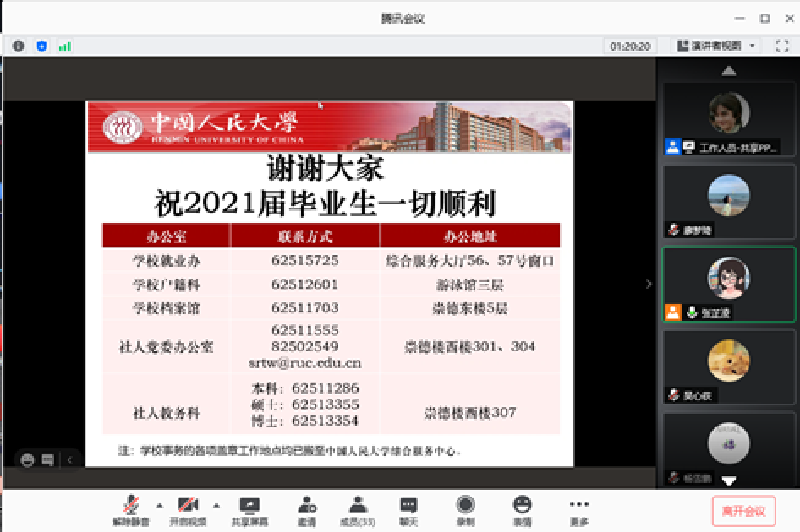 的就业工作、掌握就业过程中的技巧,帮助其进一步提升就业创业能力。2020届本、硕、博毕业生通过线下和线上腾讯会议同步参与了此次大会。