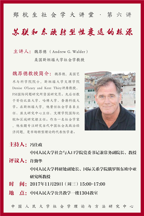 主 讲 人:魏昂德(Andrew G. Walder)美国斯坦福大学社会学教授