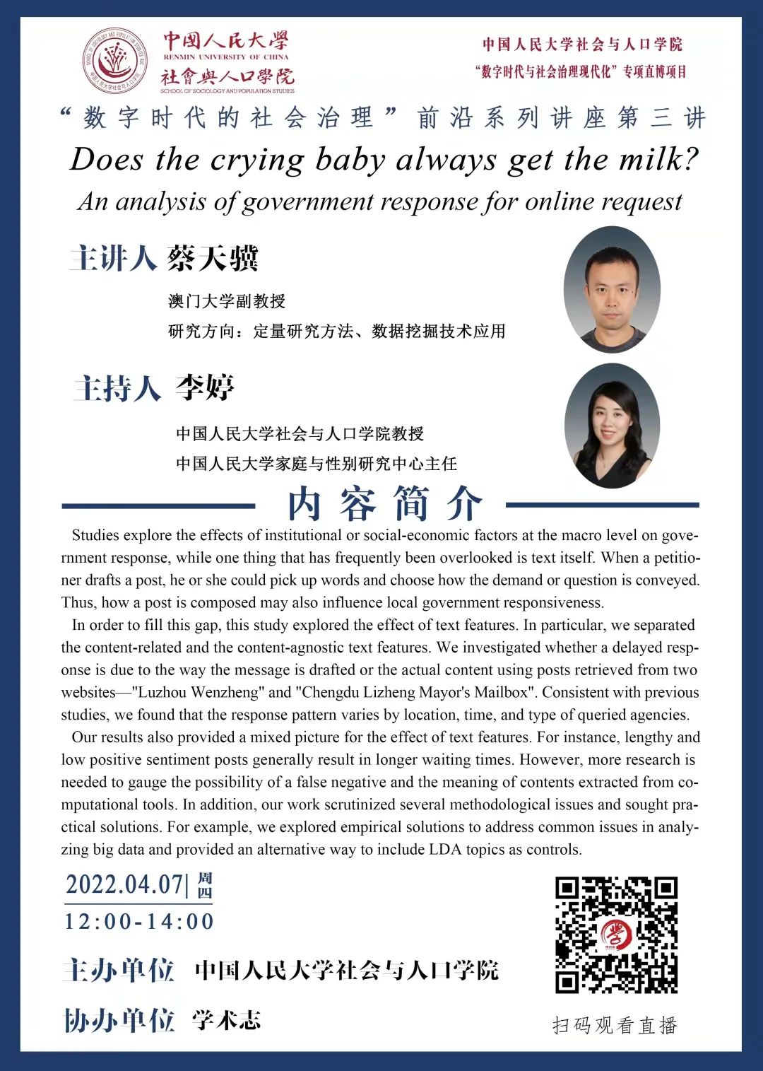 “数字时代的社会治理”前沿系列讲座第三讲:Does the crying baby always get the milk?