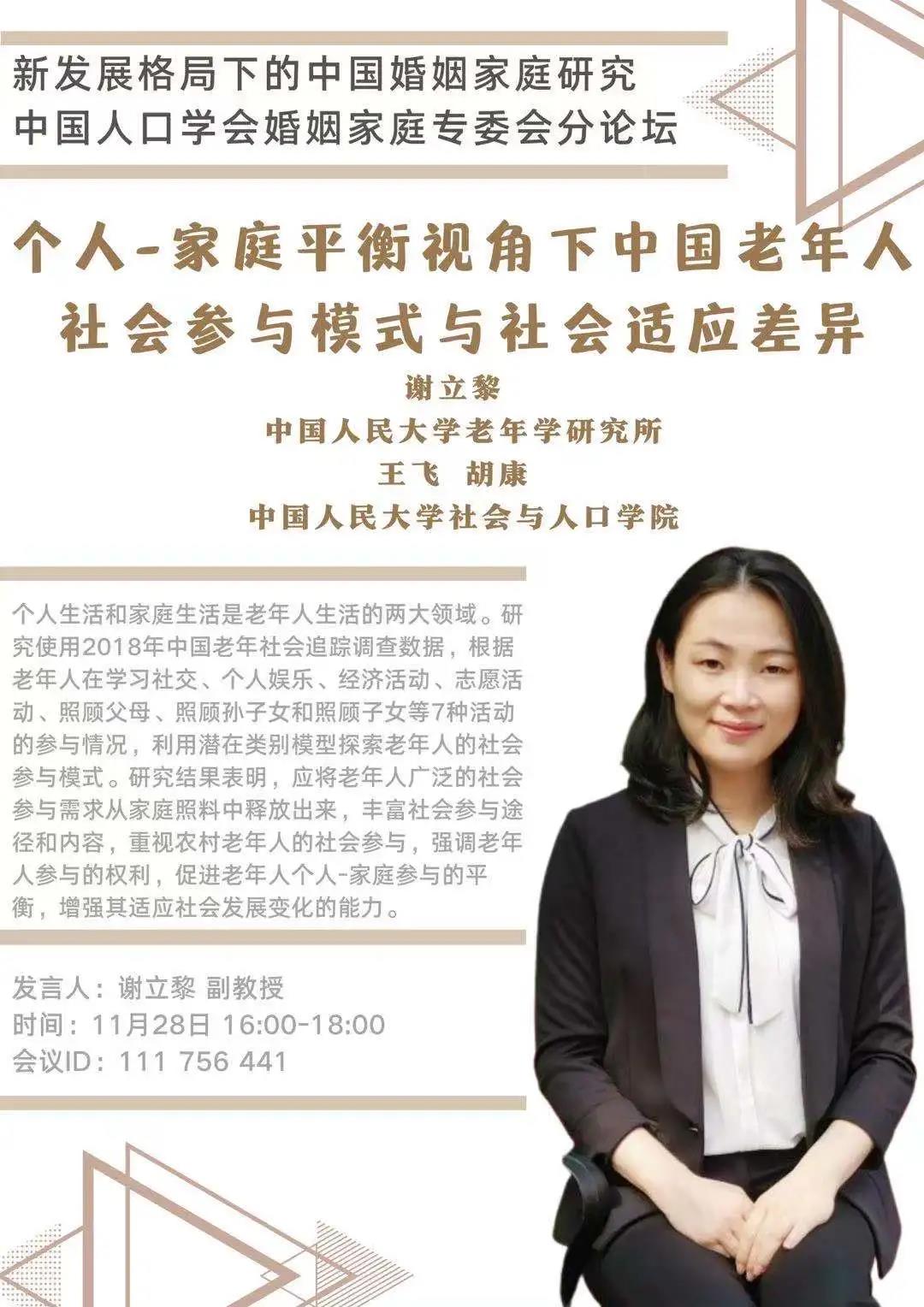 讲座预告 | 谢立黎:个人-家庭平衡视角下中国老年人社会参与模式与社会适应差异