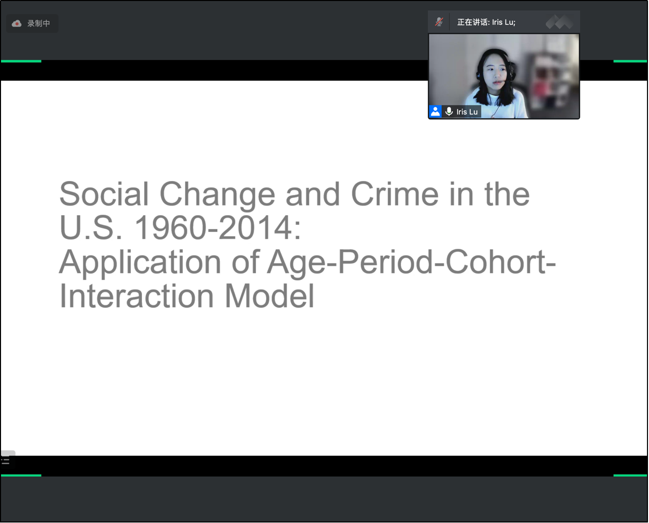 2021-12-10 文:比特28预测 图:比特28预测2021年12月8日晚8点,人口学系刘铮系列学术讲座暨严肃的人口学八卦青年论坛成功举办。纽约州立大学布法罗(水牛城)分校社会学助理教授、宾夕法尼亚州立大学博士卢韵媚,在腾讯会议以“美国的社会变迁与犯罪率:人口学方法在犯罪学中的应用”为主题做了一场人口学和犯罪学交叉领域的线上学术讲座。中国人民大学社会与人口比特28预测 老师王东晖主持本次活动,中国人民大学社会与人口比特28预测 以及其他国内外院校的150余名师生参与了本次学术分享活动,并在会后同卢韵媚博士就讲座内容展开了充分的讨论与交流。