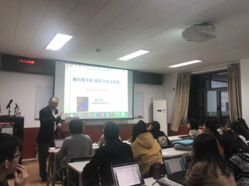 与会师生围绕郭教授讲座主题展开了热烈的讨论,其中李婷老师谈到,在实际应用中一些很难测量的遗漏变量如何被倾向值分析法解决?以及倾向值匹配与敏感性分析之间有什么关系等,郭教授一一给与了回应,他提出倾向值分析法是对明显的选择性误差给出控制,如果是遗漏的变量还是无法用纯随机的方法来解决,希望大家能用多种倾向值的方法来证明研究结果,因为综合使用本身就是一种敏感性分析。