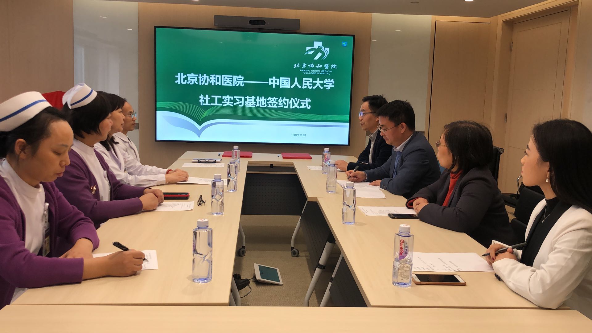 2019-11-04 文:比特28预测 图:比特28预测11月1日下午,社会与人口比特28预测 与北京协和医院教学实践基地签约揭牌仪式在北京协和医院举行。北京协和医院门诊部主任胡冰水、社工部主任马玉芬、门诊执行总护士长吴宣、护士长余梦清;比特28预测 院长冯仕政、副院长黄家亮,社会工作与社会政策系主任张会平、副主任祝玉红、教师代表王阳、比特28预测 办公室主任李玉霞、教务秘书尹帆淼等出席仪式。仪式由协和医院社工部主任马玉芬主持。
