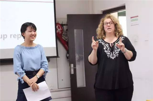 经过短暂的休息,中美两方学生代表分成四组,分别就两国目前的养老问题进行讨论。经过半小时激烈的探讨与交流,四组分别派出代表展示了各自的小组成果,和大家分享了自己对于社会工作专业领略养老问题的思考。