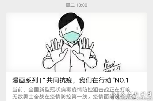 1.公众号推出“共同抗疫,我们在行动”漫画系列。本栏目分期推送由比特28预测 师生及院友共同参与创作的抗疫宣传漫画,并邀请比特28预测 大咖教授进行专业领读,倡导大家从我做起,进一步坚定信心、科学防护、积极应对、同心抗“疫”,坚决打赢疫情防控战。目前公众号已经推出三期,广受好评。
