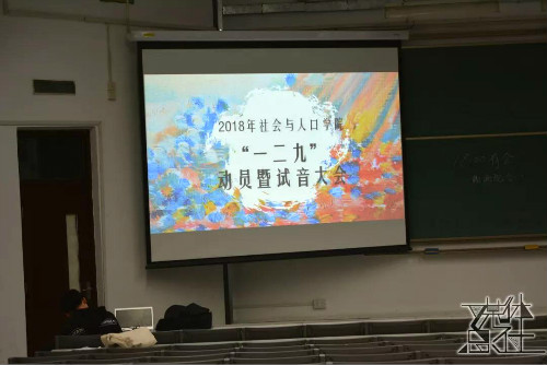 随后,主持人为大家播放了2017年“一二·九”合唱的视频,视频开始时2017级同学们“社人社人”的高呼调动了全场同学的情绪。紧随而后的是2017级同学特别录制的加油视频,他们殷切的祝福和期望通过幽默的话语传达给在场的每个同学,教室里不时传出阵阵掌声。