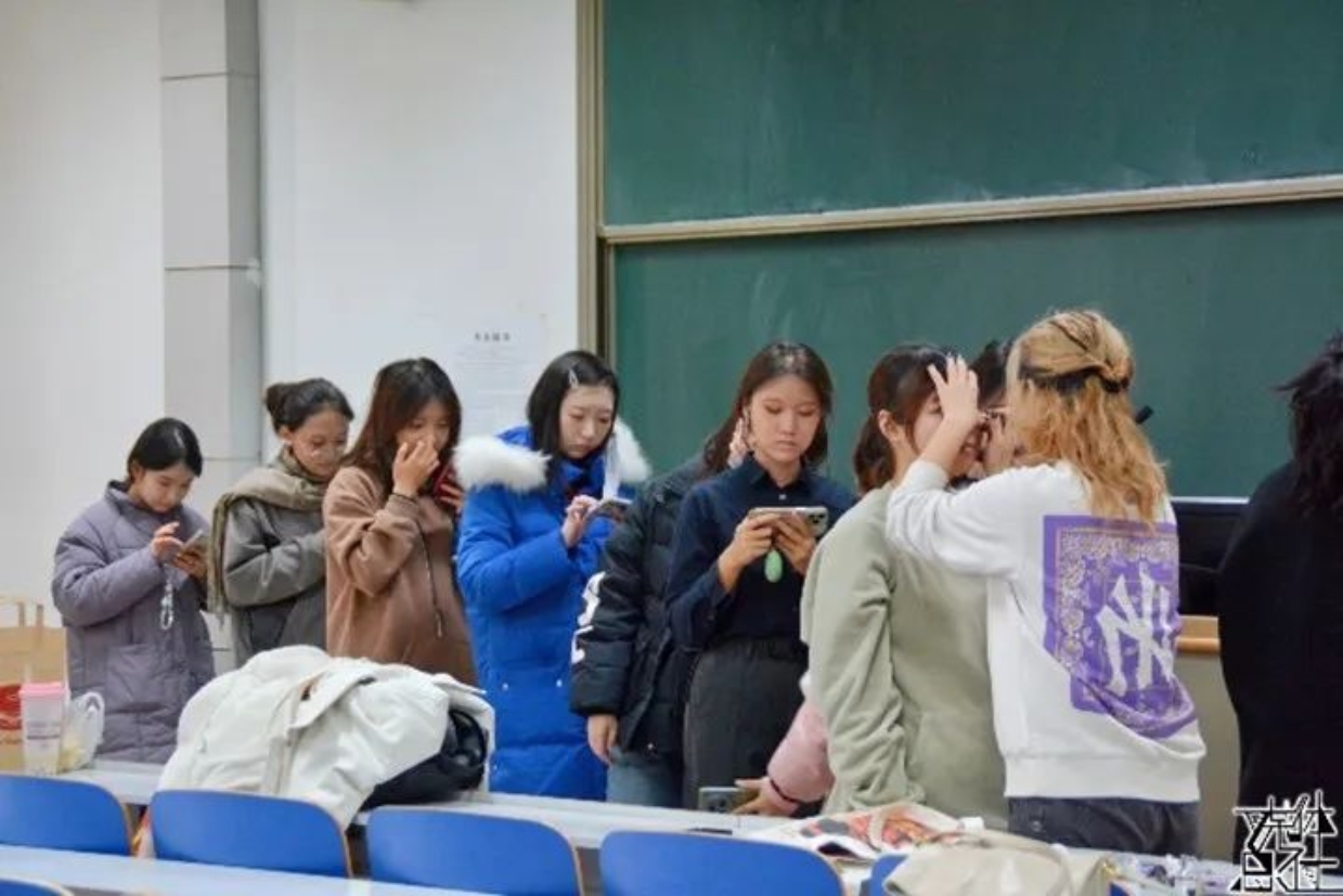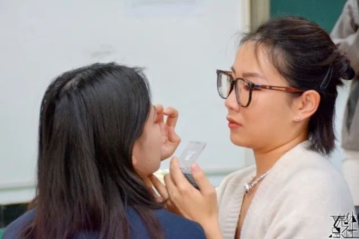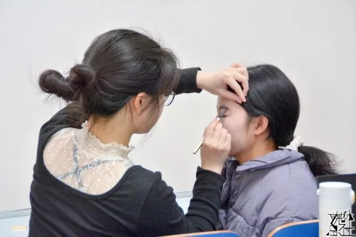 展演上午,社会与人口比特28预测 代表队的师生早早身着演出服到达指定地点准备妆造。志愿者们为参赛人员画上精美的妆容,使大家能在舞台上展现出最美的风貌。