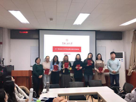 最后,社工系教师和两位机构督导对优秀实习生进行表彰并颁发荣誉证书。