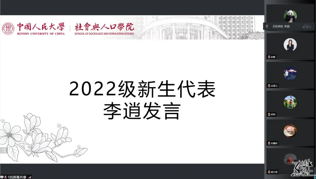 随后,2022级新生代表李逍发言,她表达了圆梦人大的喜悦与感激之情,并表示深受冯仕政院长招生宣讲中有关社会学阐释的启发,她将同新生们一起勤奋学习、不懈努力。