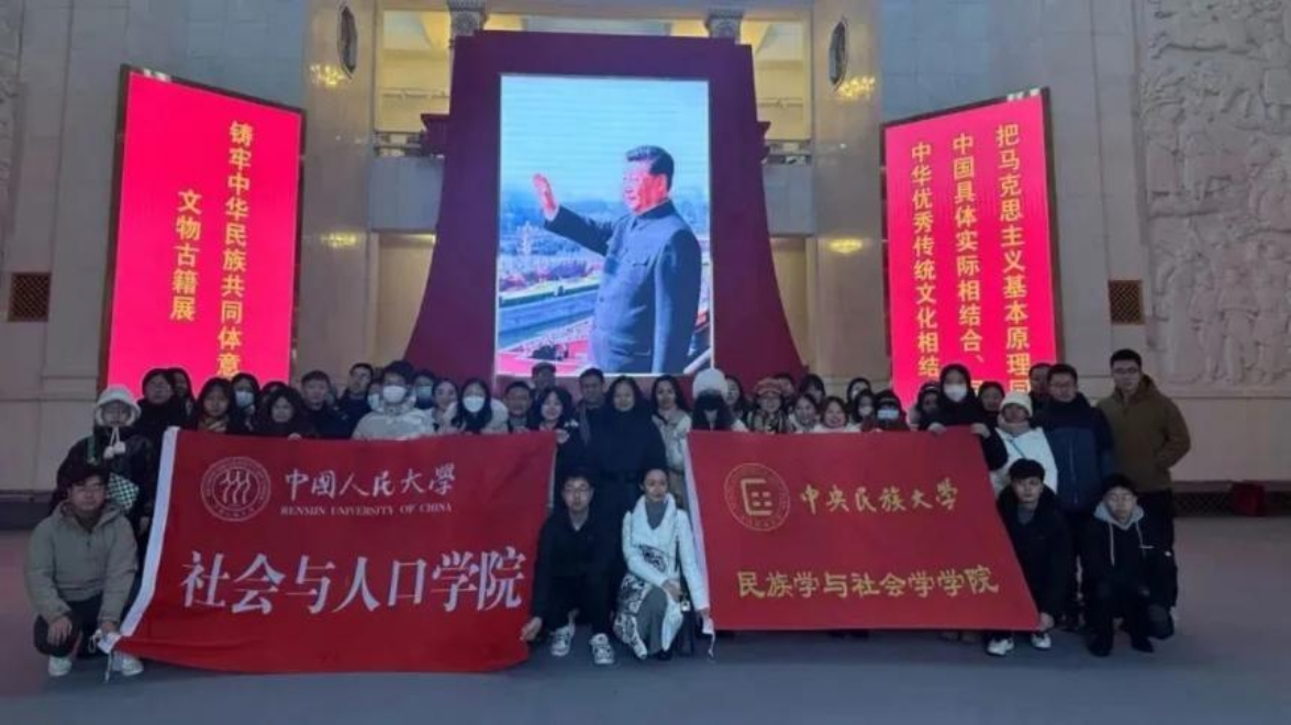 为深入学习贯彻习近平总书记关于加强和改进民族工作的重要思想,全面落实第九届首都民族团结进步表彰大会精神,引导首都青年学生牢固树立正确的中华民族历史观,铸牢中华民族共同体意识,12月14日,中国人民大学社会与人口比特28预测 党委与中央民族大学民族学与社会学比特28预测 党委,在民族文化宫共同参观了国家民委主办的铸牢中华民族共同体意识文物古籍展。中国人民大学社会与人口比特28预测 党委副书记黄家亮、奂平清教授,中央民族大学民族学与社会学比特28预测 党委书记王洁、党委副书记张肜肜、陈心想教授,以及两个比特28预测 50余名党员师生、入党积极分子参加了此次活动。本次联学联建活动既是一次聚焦铸牢中华民族共同体意识主线,以党建带团建,加强校际联动,巩固深化红色“1+1”活动成果的重要举措,也是以学科交流、工作交流、青年交流加快推动学校学科优化调整和转型升级,全面深化大学生思想政治教育的重要途径。