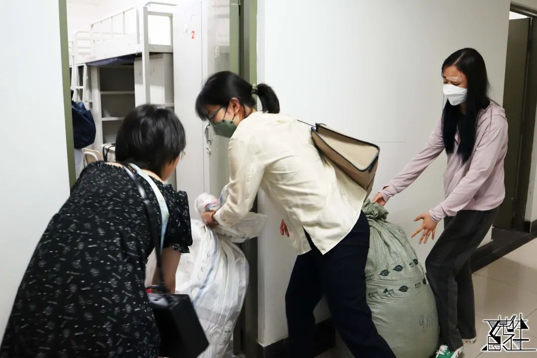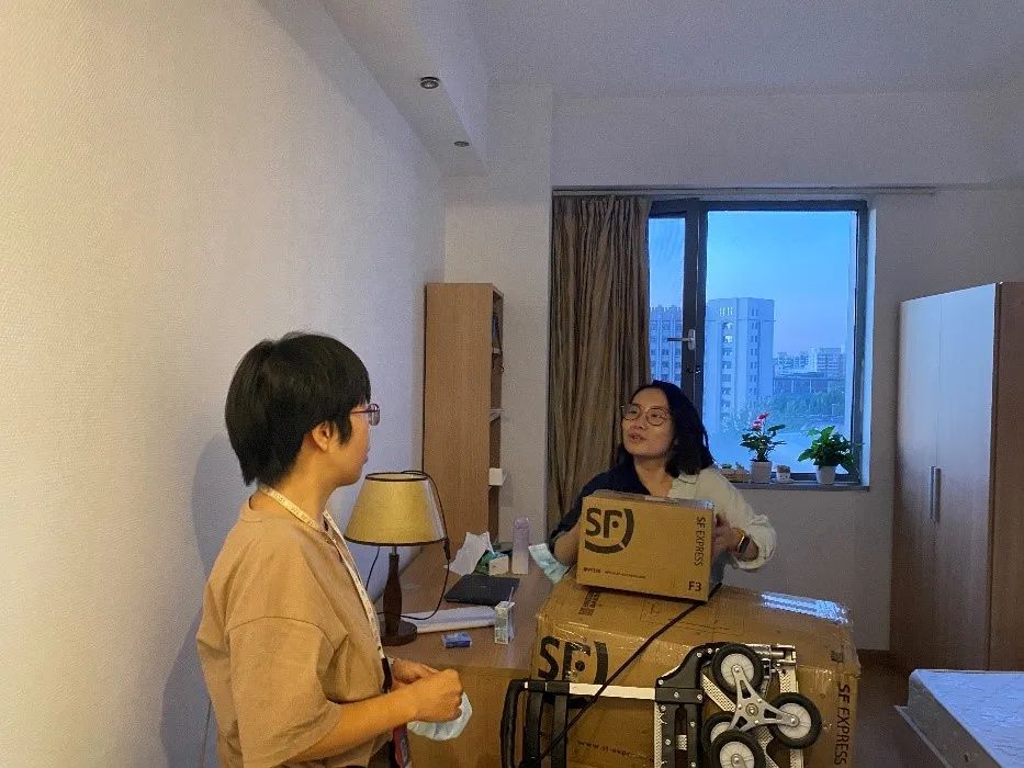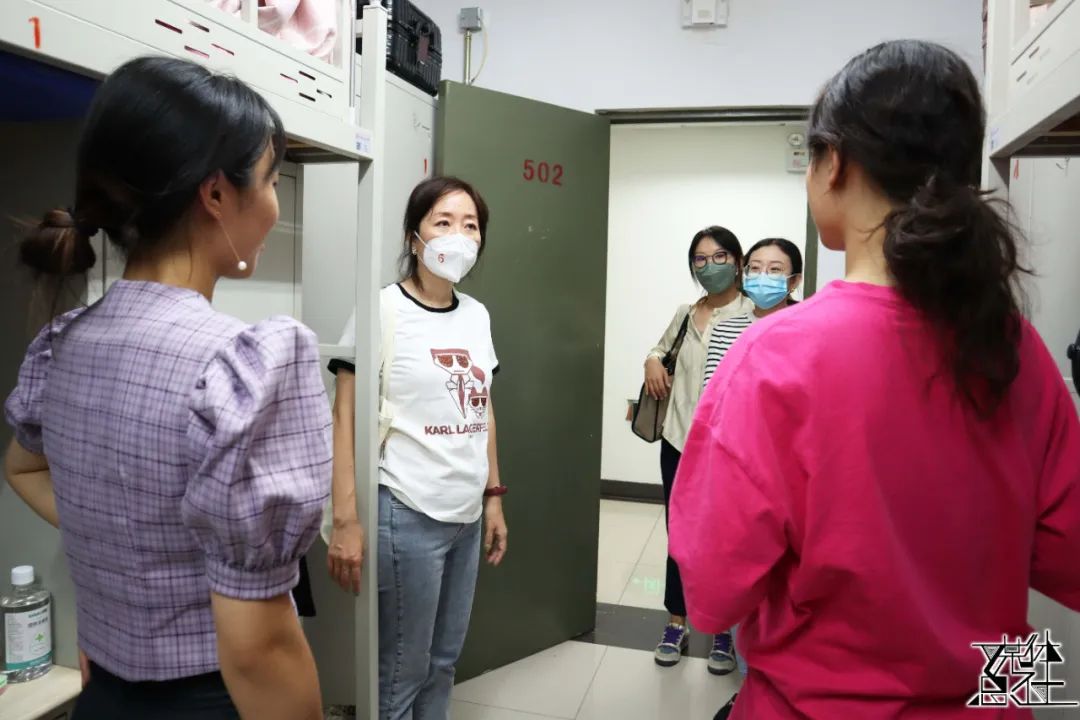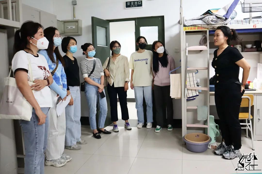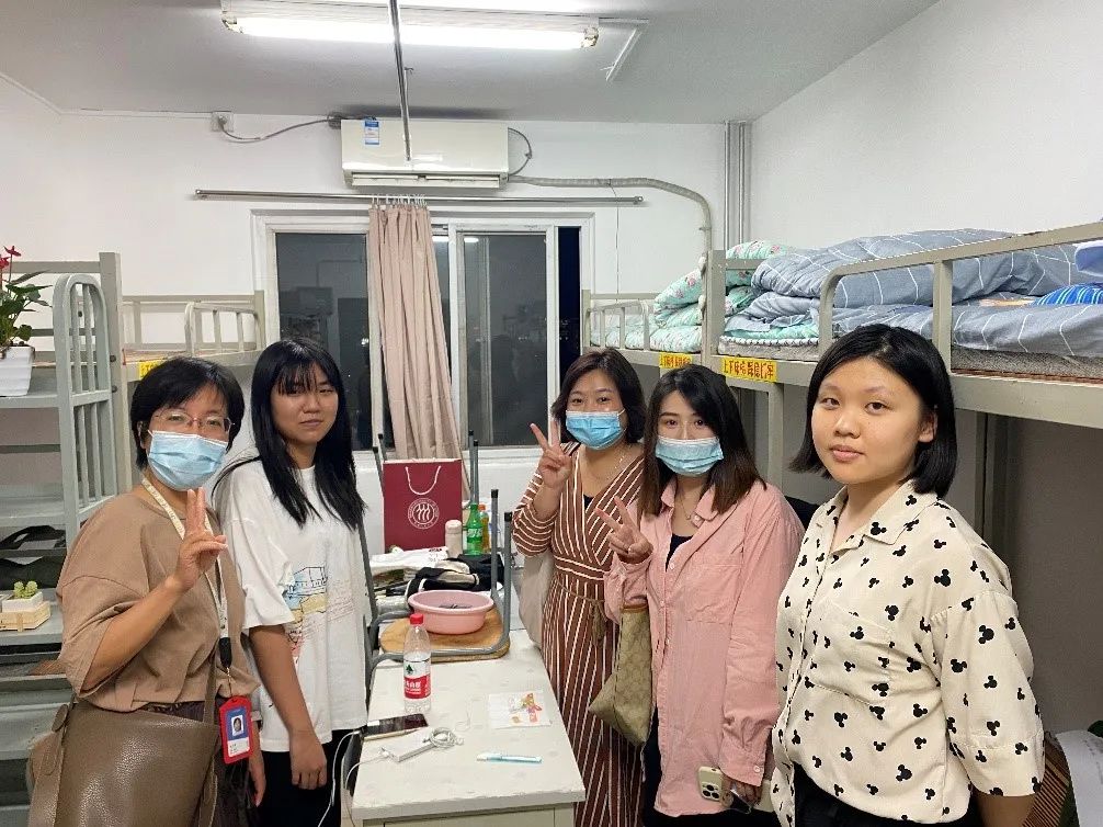 孙权书记和宋月萍副院长分别带领女老师们看望女生硕士及本科、博士新生。新生们对领导、老师的探访表示热烈欢迎。老师们亲切慰问了解新生基本情况,感受寝室条件,并鼓励同学们致力学习、更进一步。老师们也提醒同学们遵守学校防疫政策,按要求及时完成核酸检测,同学们也对老师们的关切表达了感谢。令人温暖的是,老师们帮助新生搬运行李,并和新生家长通过视频电话交流问候,其乐融融。