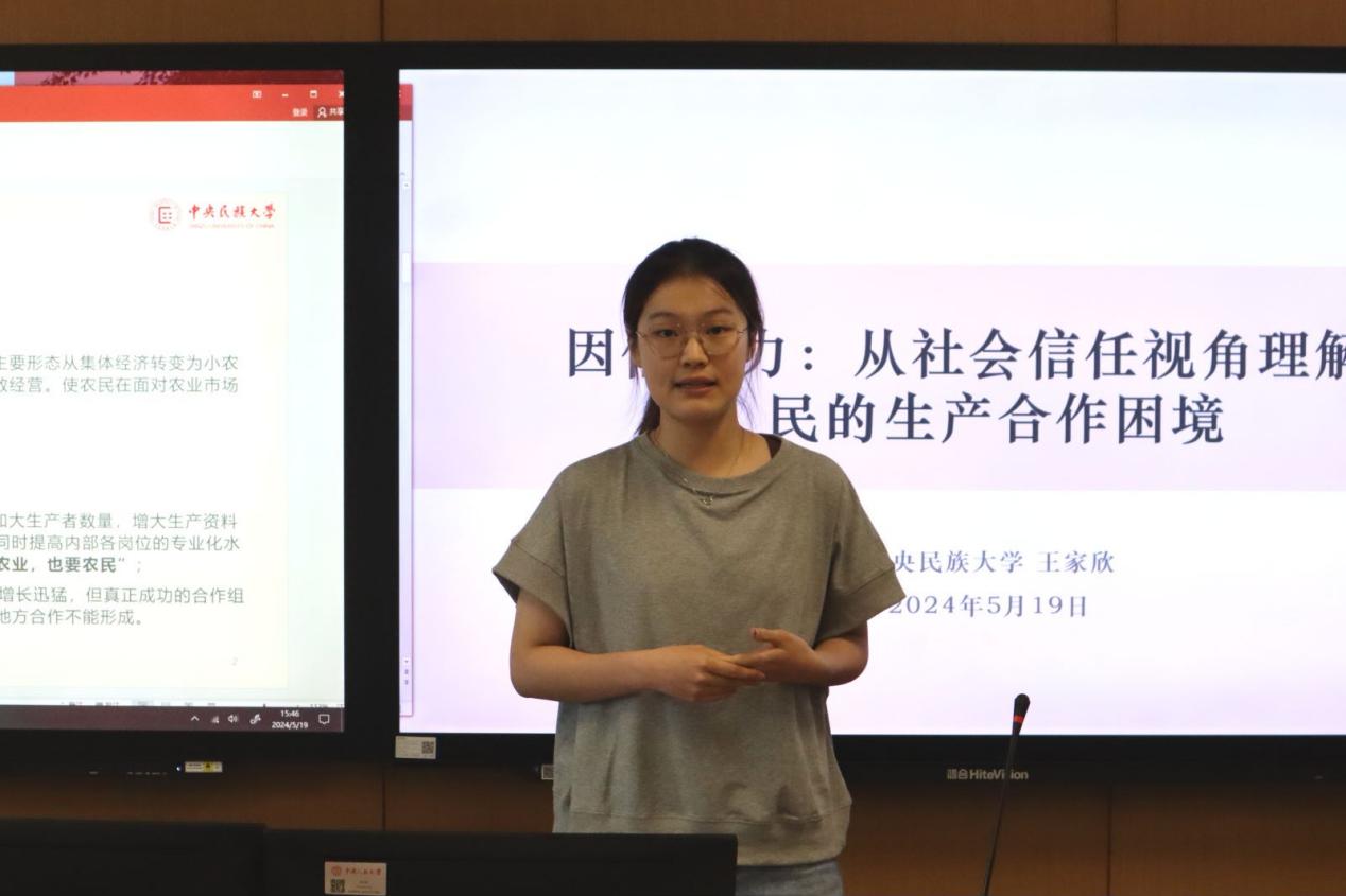 农村社会治理分论坛由中国人民大学李桐羽主持,北京师范大学韦瀚深、中国人民大学窦友镱、中国农业大学赵健坤、中央民族大学王漫钰、中央民族大学王家欣做论文分享,上海大学杨勇老师评议。