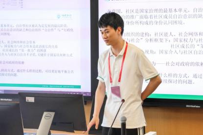 城市社会治理分论坛由中国人民大学硕士生李天浩主持,华东理工大学本科生赵培涵、中国农业大学本科生周文泰、华中科技大学本科生周明喆、中央民族大学本科生魏子彦、西安交通大学本科生朱国豪做论文分享,北京工业大学文法学部李阳老师评议。