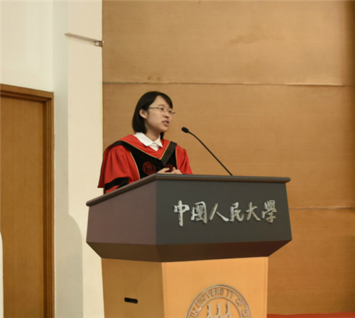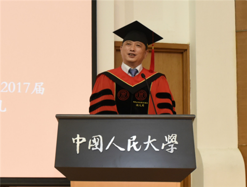 中国人民大学党委常务副书记张建明教授代表学校致辞。他向全体毕业生表示热烈的祝贺和美好的祝愿,向辛勤育人的老师们表示感谢,向含辛茹苦的家长们表示敬意。同时,他对毕业生们提出了殷切希望:要成长为勤勉踏实、勇往直前,勇于担当、心怀天下的人大人;要怀着“减缩社会代价、增促社会进步”的专业精神,融入时代,承担起更多社会责任。
