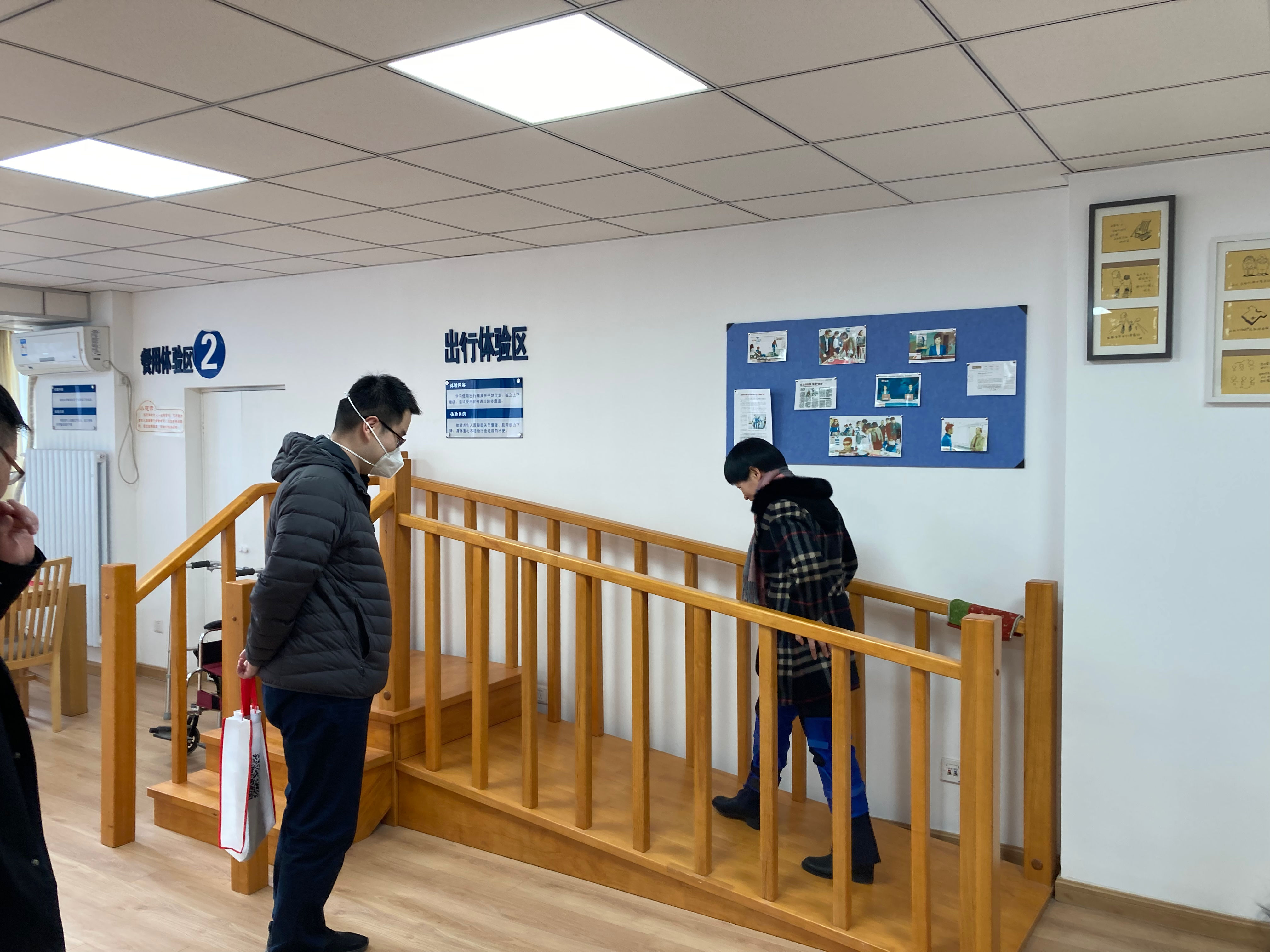 座谈会后,老龄协会政策研究部调研团队参观了中国人民大学老年体验中心。“老年体验中心”自2013年成立以来,吸引了政府、事业单位、老年企业、媒体、学校等众多机构的参观和交流,为老年学的科研和教育提供了平台。