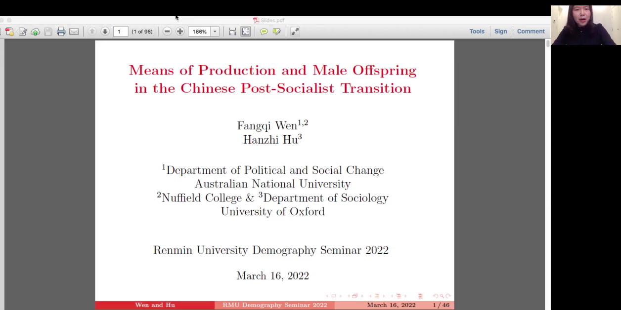 回溯过去几十年间,中国在经济基础、亲属关系与性别观念以及人口政策方面发生的巨大变革,为研究开展提供了独特机会。温芳琪老师首先从恩格斯的私有财产-专偶制命题和市场转型之辩出发解释研究开展的理论基础,并基于此清楚界定关键变量——掌握生产资料(非农职业比较私有部门的雇主与国有部门的雇员之间的差别,农业职业比较直接掌握耕地与在集体经济组织中劳作之间的差别)。然后进一步结合实证分析阐释掌握生产资料会不会提高拥有男性子嗣的概率,进而巩固父系继承制度的延续。研究发现,就非农职业而言,从公有部门雇员转变为私有部门雇主会增加有男性子嗣的概率,且这一效应仅发生在男性群体中。就农业职业而言,自主掌握耕地会提高农民拥有亲生儿子以及收养儿子的概率,但不会增加他们收养女儿的概率。从土地改革中获益的农民,为确保获得男性子嗣,不仅会增加生育数量,也会在更高孩次上采用选择性的性别流产。研究结论和恩格斯私有财产专偶制命题推论较为一致,即私人掌控生产资料在一定程度上导致了父权制家庭在中国的回潮。