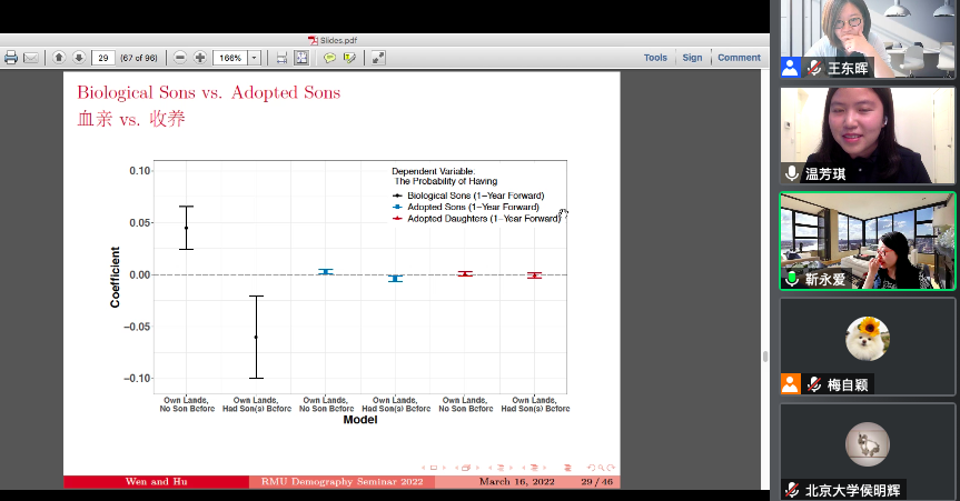 2022-03-16 文:比特28预测 图:比特28预测2022年3月16日中午12:00,人口学系刘铮系列学术讲座暨严肃的人口学八卦青年论坛成功举办。澳洲国立大学政治与社会变迁系助理教授,纽约大学社会学博士,牛津大学谢菲尔德比特28预测 博士后研究员温芳琪,在腾讯会议以“性别偏好的起源——来自恩格斯的启示”为主题做了一场人口社会学线上学术讲座。中国人民大学人口与发展研究中心王东晖老师主持了本次活动,中国人民大学社会人口比特28预测 及其他国内外院校相关专业的近三百名师生参与了本次学术分享活动,并在会后同温芳琪老师就讲座内容展开热烈讨论与交流。