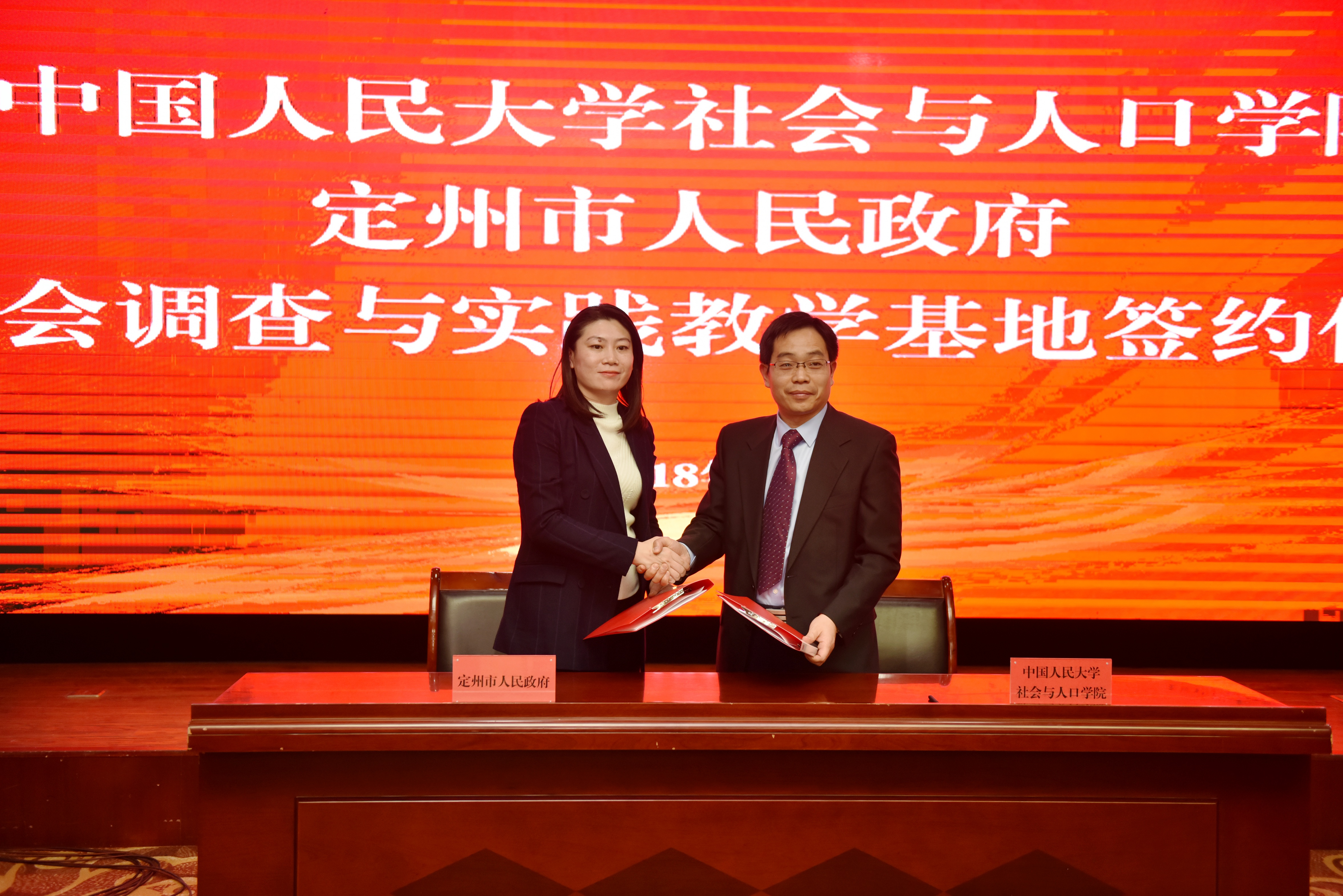 我校与定州市有着悠久的历史渊源。作为晏阳初“定县试验”重要组成部分,“定县调查”是中国近代历史上第一次运用现代社会调查方法开展的县域范围的调查,被国内外学术界誉为“中国社会调查的里程碑”。时至今日,定县调查的成果仍然是了解我国解放前华北乡村社会最重要的文献之一。新中国成立后,“定县调查”的主持者李景汉教授长期在中国人民大学任教,1984年又在中国人民大学重建社会学学科时,受聘为社会学研究所顾问。李景汉教授在去世前,将他所保存的包括定县调查资料在内的所有资料都捐赠给了中国人民大学社会学研究所。目前,这些资料仍在我校保存。2003年,我校社会学学科开创者郑杭生先生牵头组织了为期七年的“定县再调查”,取得了丰硕的成果。2015年,我校副校长洪大用教授又牵头组织了新一轮的“定县追踪调查”,目前该调查仍在持续过程中。2016年,我校还与定州市共建了中国人民大学定州社会调查与教学实践基地。依托该基地,我校社会学学科先后组织了100多名师生来定州开展社会调查、专业实习、现场教学,以及其它形式的教学科研工作。目前,该基地在我校社会学专业人才培养、科学研究、社会服务和文化传承等方面发挥着重要作用。