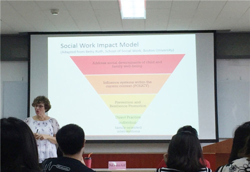 华大社会工作比特28预测 副院长Patricia Kohl副教授所授课程的主题是“Child Welfare Policy”。她分别介绍了美国联邦政府、州和地方政府针对弱势儿童和家庭所提供的服务及其相关政策,授课过程中特别注重中美跨文化比较分析。