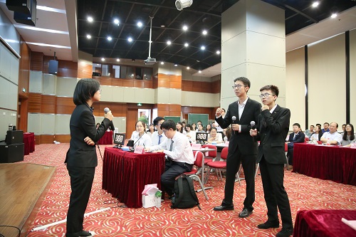 首先进行的是初赛比拼。参赛学校共分为A、B两组进行比赛。初赛分为必答题、抢答题、选答题三个环节。必答题环节,场上选手冷静思考、沉着应答;抢答题部分,各代表队眼疾手快、积极抢答,现场气氛紧张热烈。接下来的选答题环节,着重考验选手们的知识储备水平,大家谨慎作答,各展风采。最终复旦大学、南开大学、华中科技大学、中央财经大学、中国政法大学、中国人民大学代表队突出重围进入决赛。