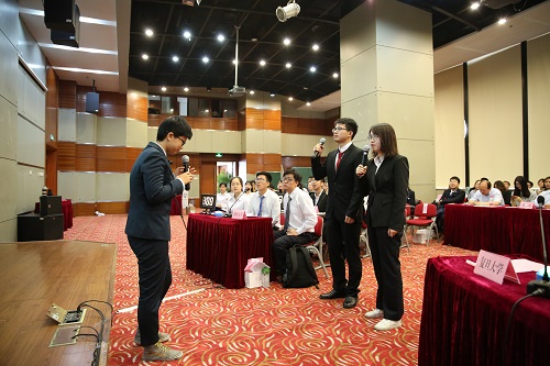 接着,现场参赛选手进行了自我介绍和交流分享。中国人民大学的参赛选手首先发言,他们表达了对兄弟高校参赛选手的欢迎和对本次比赛的喜爱之情。各兄弟高校的参赛选手一一进行自我介绍,与在场师生交流参赛心得,表达了对本次比赛的感谢以及对增进各校学子沟通交流的美好期盼。