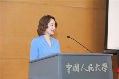 宋月萍作为教师代表发言。她诙谐幽默地与大家共同回忆了在人大生活的点点滴滴。她特别强调,毕业生们即将开启新的人生,需要时刻保持强大的内心、坚定自己的选择,要相信持之以恒的努力终将得到回报。她向辛苦抚养孩子长大的父母们表示感谢,并祝愿各位毕业生们前程似锦、生活幸福。