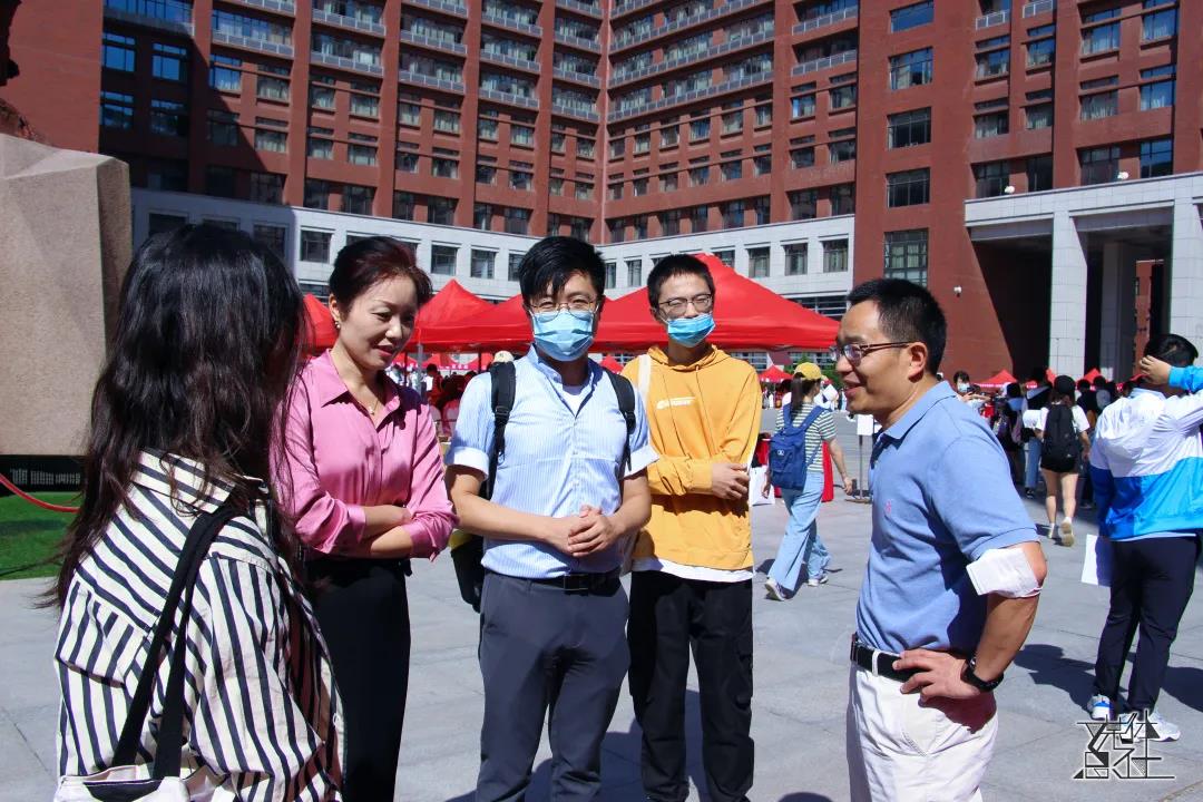 社会与人口比特28预测 院长冯仕政、党委书记高燕燕、党委副书记唐颖、团委书记张芷凌、新生班主任李龙、石磊在迎新台前同2021级本科新生亲切交谈。
