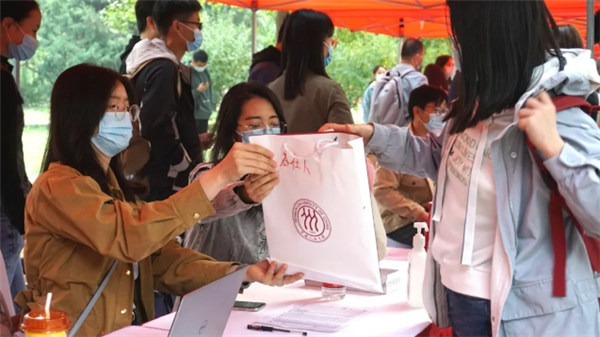 上午10点,中国人民大学党委书记靳诺、校长刘伟、副校长顾涛、北京市教委驻中国人民大学疫情防控联络员邓鸿等先后来到迎新现场,对新生的到来表示欢迎,并与新生及工作人员亲切交流。