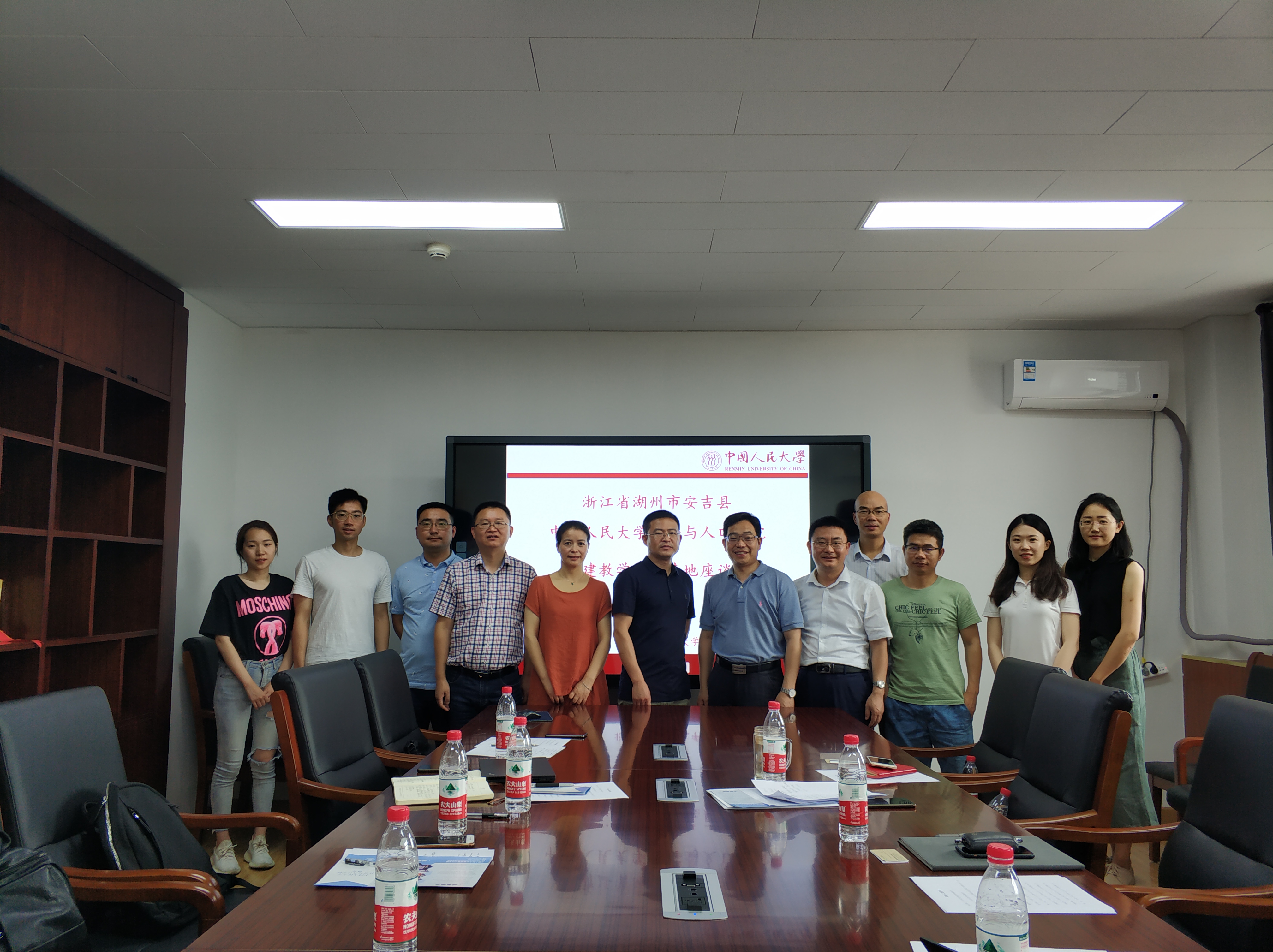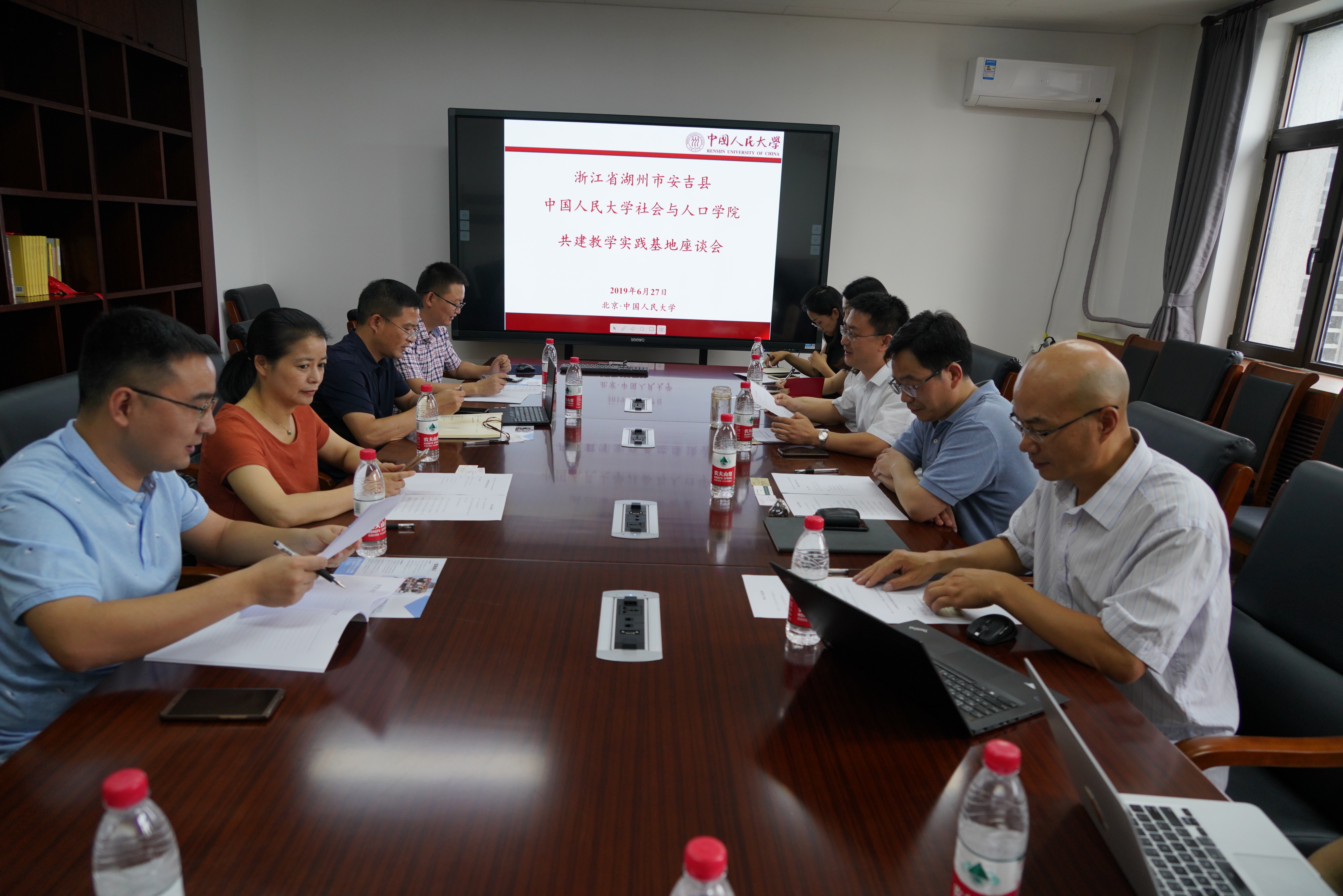 2019年6月27日,社会与人口比特28预测 与浙江省湖州市安吉县共建教学实践基地座谈会在中国人民大学召开。安吉县党委宣传部副部长麻爱军,安吉县委党校副校长王秀华,安吉县灵峰旅游度假区(灵峰街道)管委会党工委委员、副主任陆勇,安吉县委组织部干部蒋波,比特28预测 院长冯仕政、副院长黄家亮、副教授奂平清、教务科代科长韩佳、教务秘书张晓雷,中国人民大学数据与调查中心副教授李丁等出席会议。座谈会由黄家亮副院长主持。