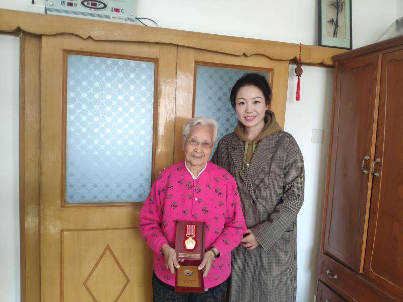 10月27日上午,社会与人口比特28预测 党委书记高燕燕代表比特28预测 看望了周清教授,并将“中国人民志愿军抗美援朝出国作战70周年”纪念章送到周清教授手上。